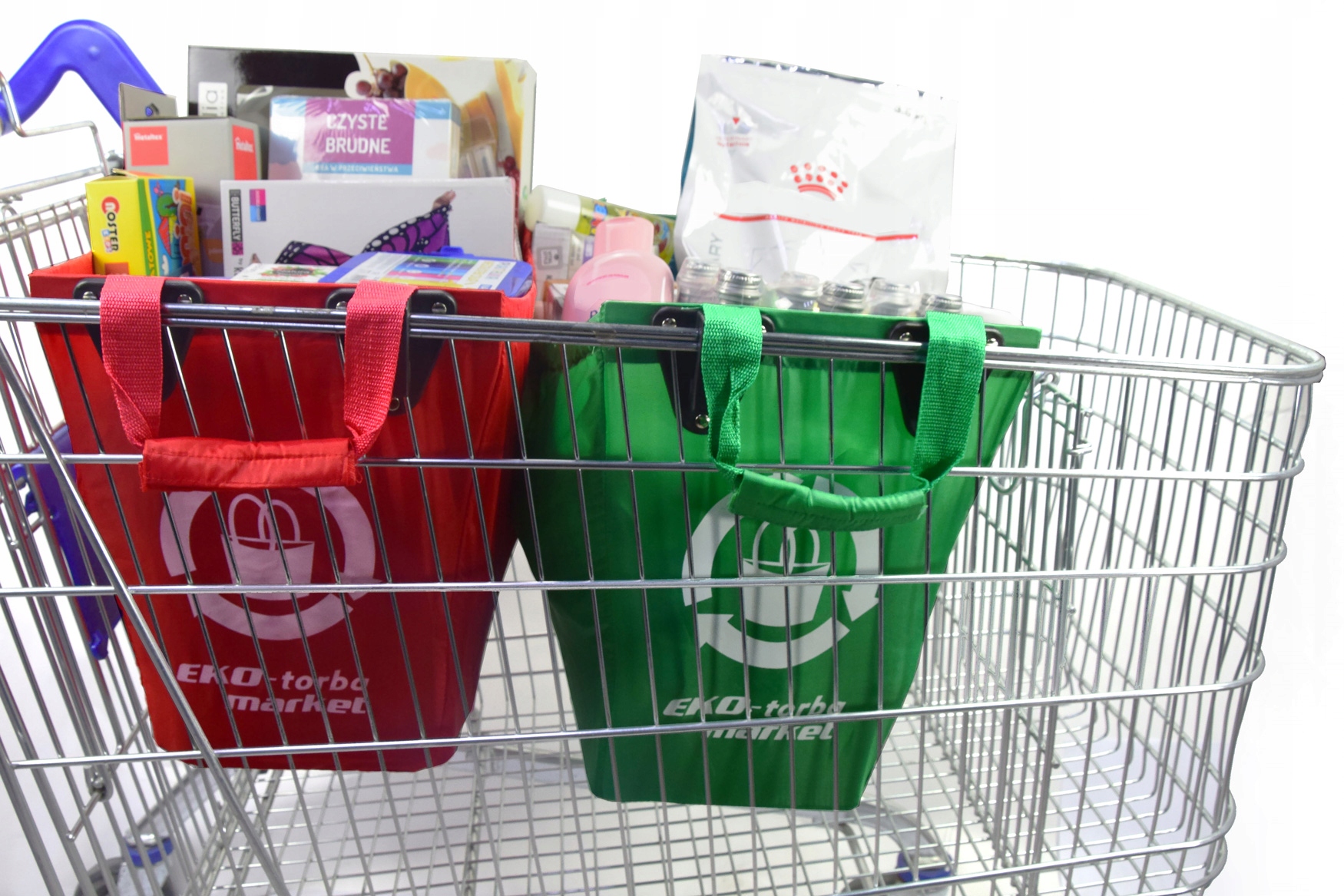 Сумка была специально разработана для использования в тележках для покупок, что означает, что она идеально вписывается в стандартные размеры тележек для покупок и обеспечивает легкое и безопасное хранение продуктов.