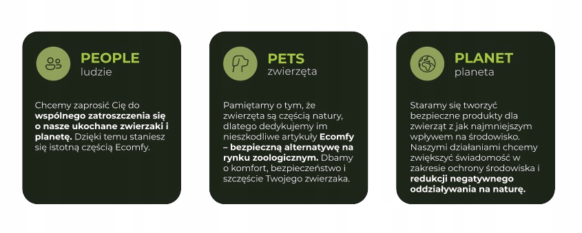 3P Систему ценностей Ecomfy определяют 3P – люди (People), животные (Pets) и планета (Planet).