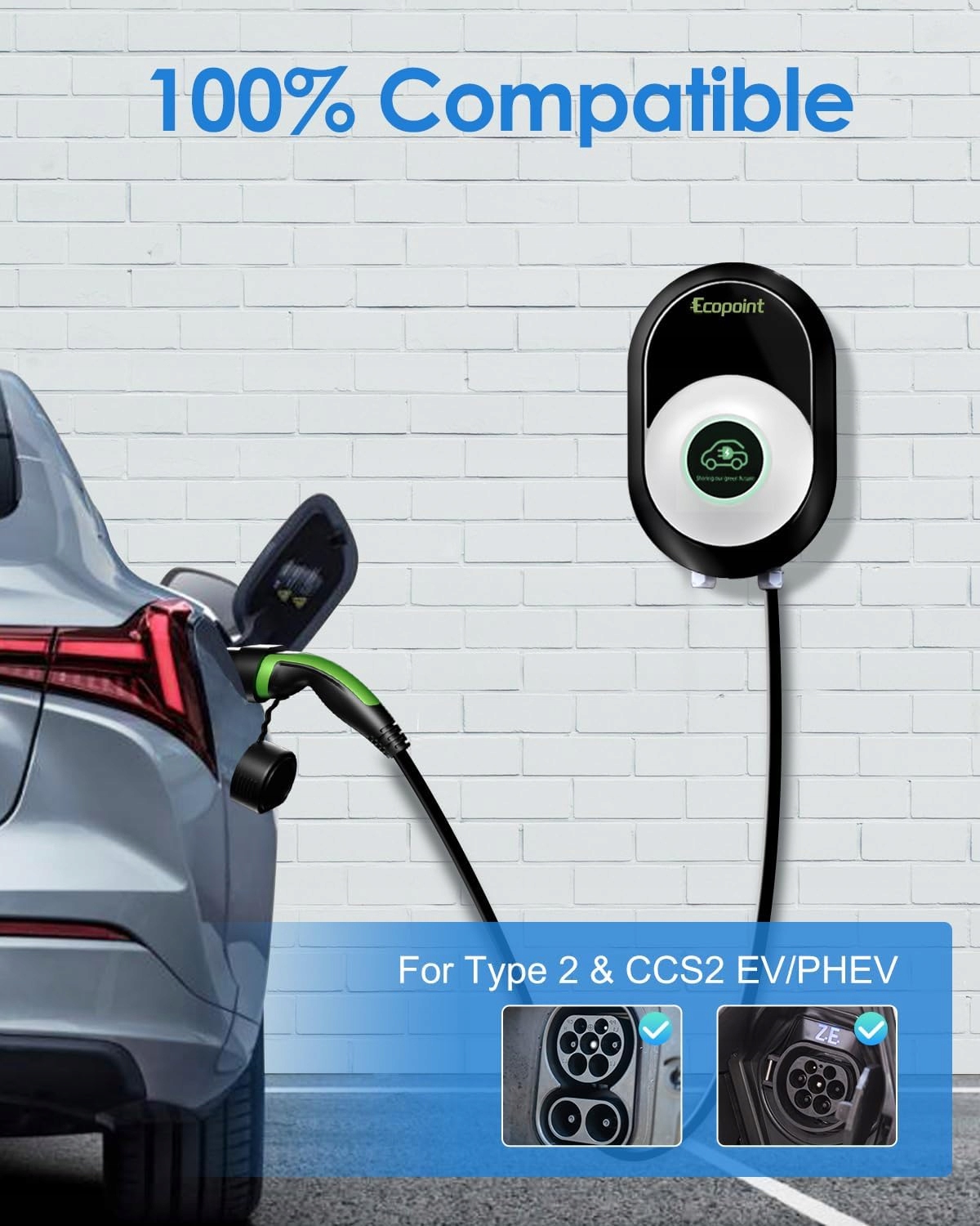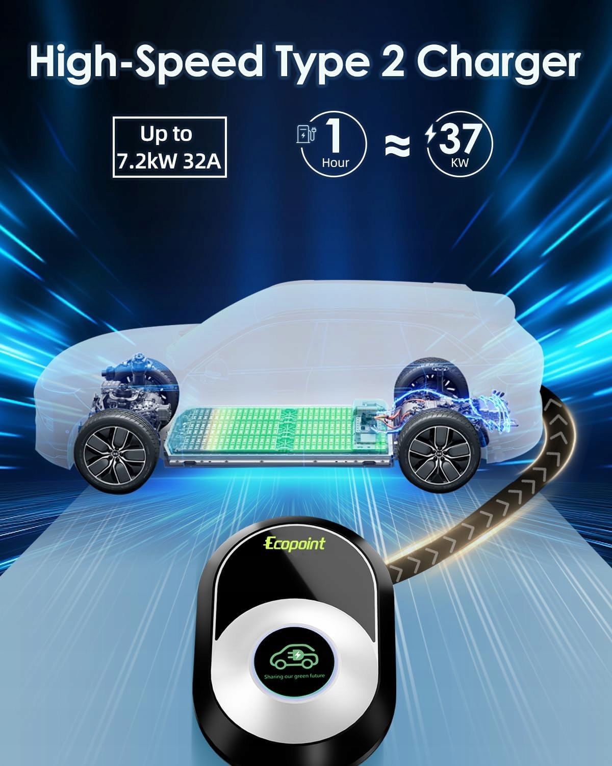 ECOPOINT Wallbox 7,2 кВт з додатком, зарядний пристрій для електромобілів 32 A з кабелем 5 м типу 2