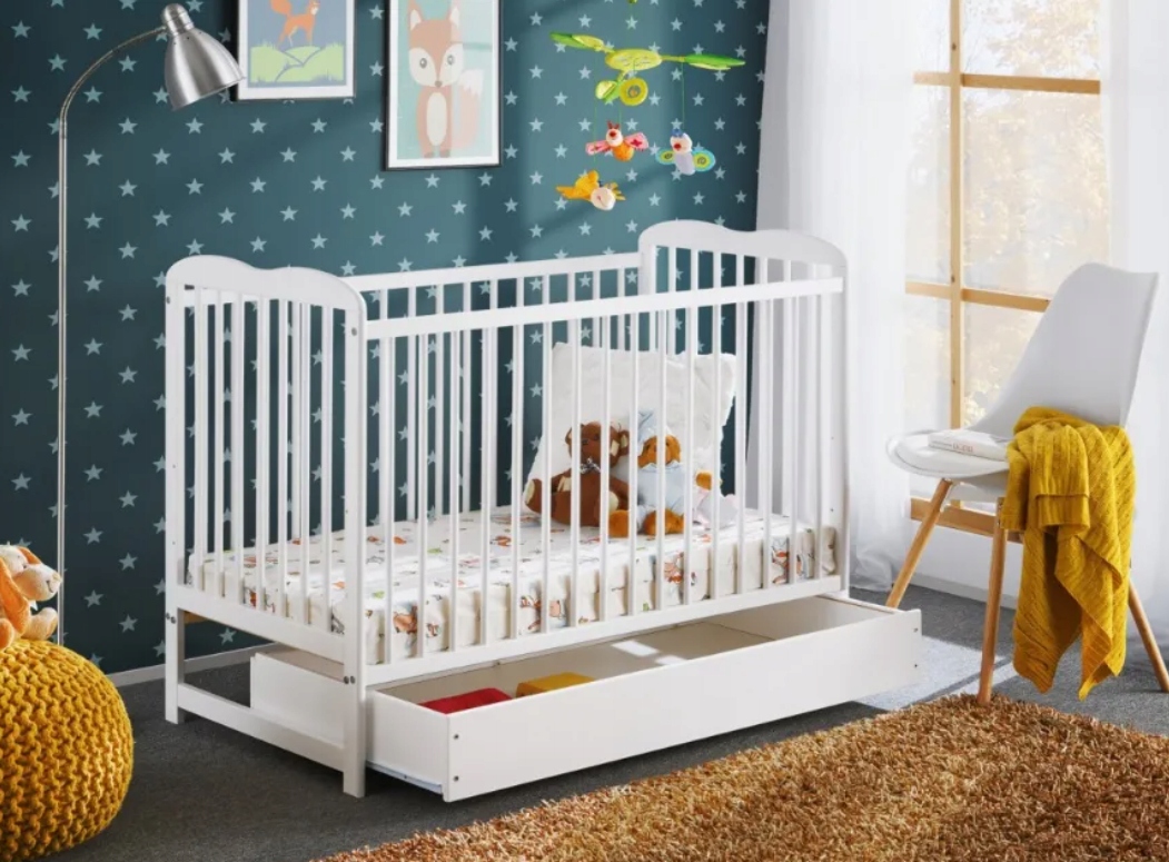 Łóżeczko dziecięce białe + pojemnik OLA II