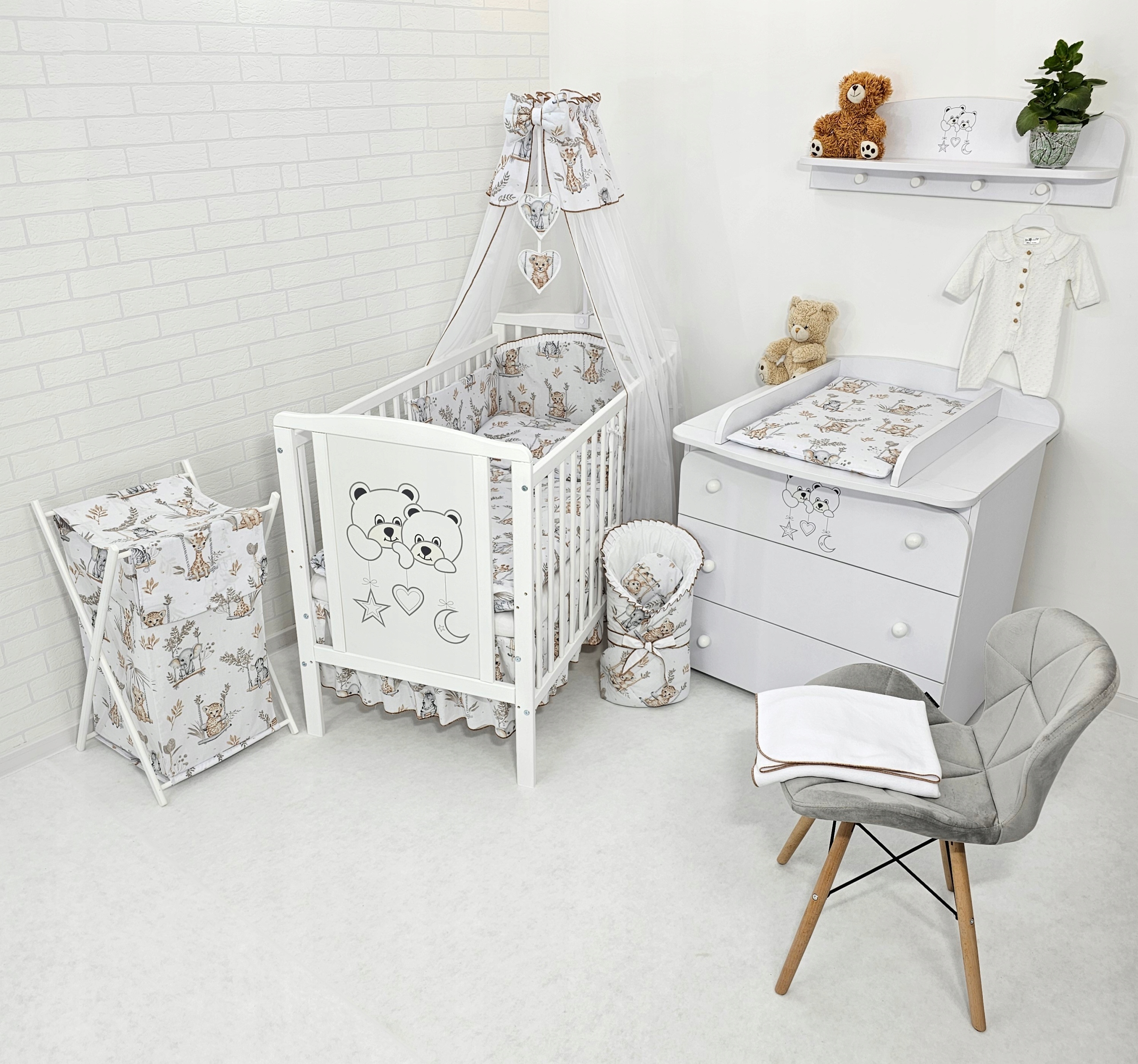 Кроватка с постельными принадлежностями и комод с переоборудованием - бежевая сафари - детская мебель