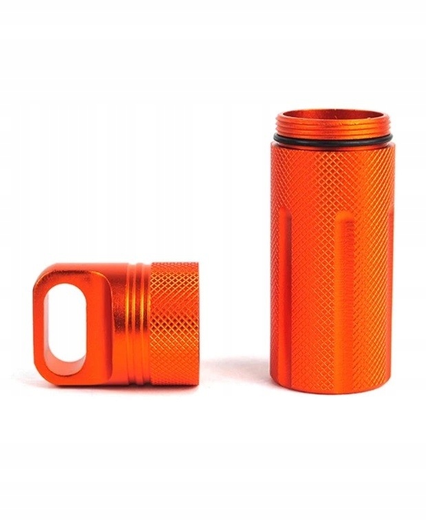 . Это водонепроницаемый, прочный контейнер для спичек или другие аксессуары, изготовленные из воздушного алюминия. В капсуле мы также можем нести другое оборудование, которое не может подвергаться воздействию влаги, например, таблетки для очистки воды, лекарства или деньги. Тядкость контейнера гарантирована резиновым уплотнительным кольцом внутри. Контейнер изготовлен из анодированного анодированного воздуха