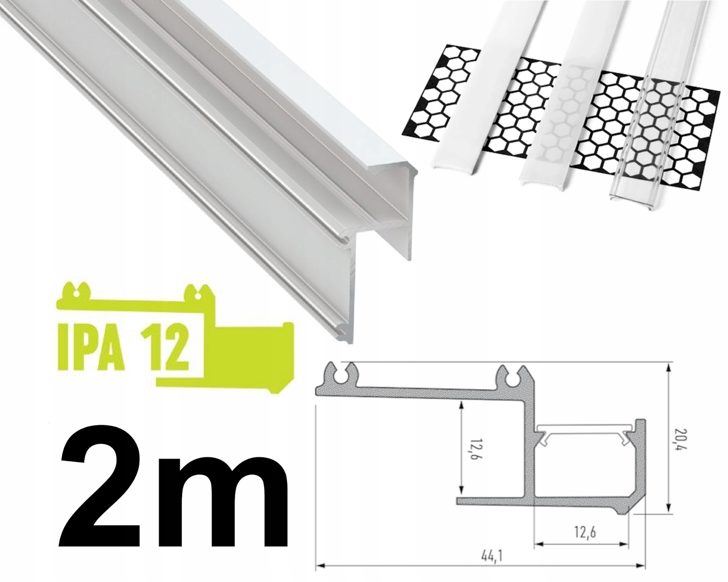АЛЮМИНИЕВЫЙ ПРОФИЛЬ ДЛЯ СВЕТОДИОДНЫХ ЛЕНТ, КРОМКА ДЛЯ ПЛАТ IPA12 GK + ЛАМПОВЫЙ ПОТОК