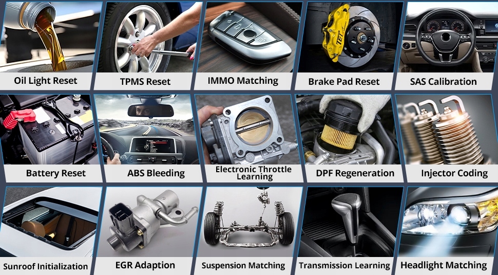 Профессиональное устройство предлагает диагностику на уровне оригинального оборудования, такую как полное сканирование автомобиля, считывание и очистка кодов неисправностей, поток данных. в режиме реального времени, специальные функции, 15 различных функций сброса обслуживания, замена модулей, модификации, персонализация, адаптация и многое другое...