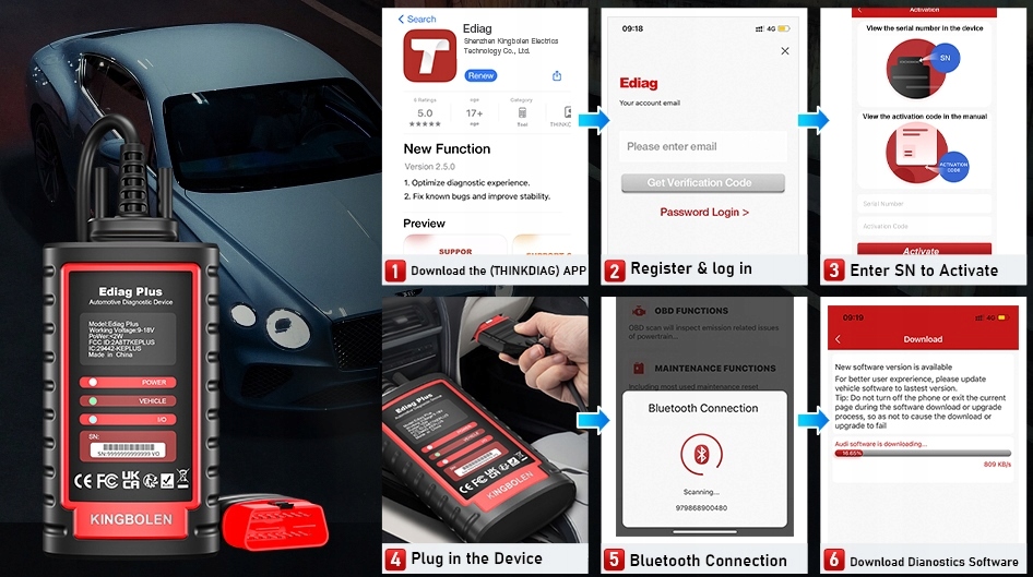 - Загрузите приложение Ediag из Play Store (Android) или iStore (iOS). .