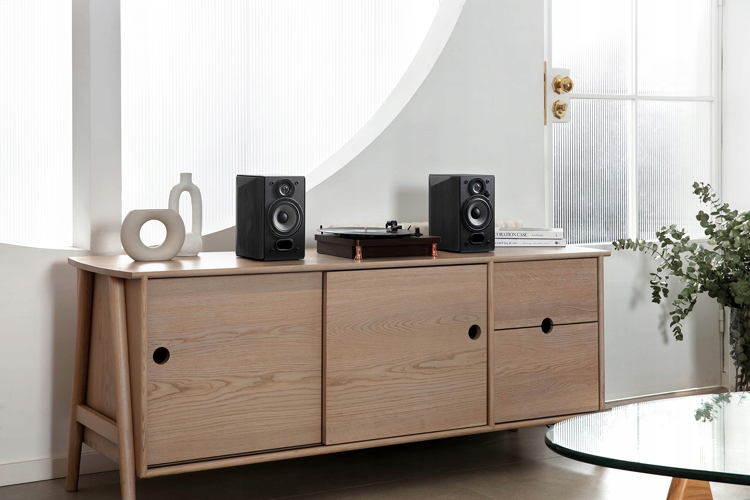 Edifier R1380DB Black — динамики Active Studio Library, ИК-пульт дистанционного управления, Bluetooth 5.1 APTX, входы RCA, оптические и коаксиальные разъемы, встроенный усилитель, среднеквадратическая мощность 42 Вт