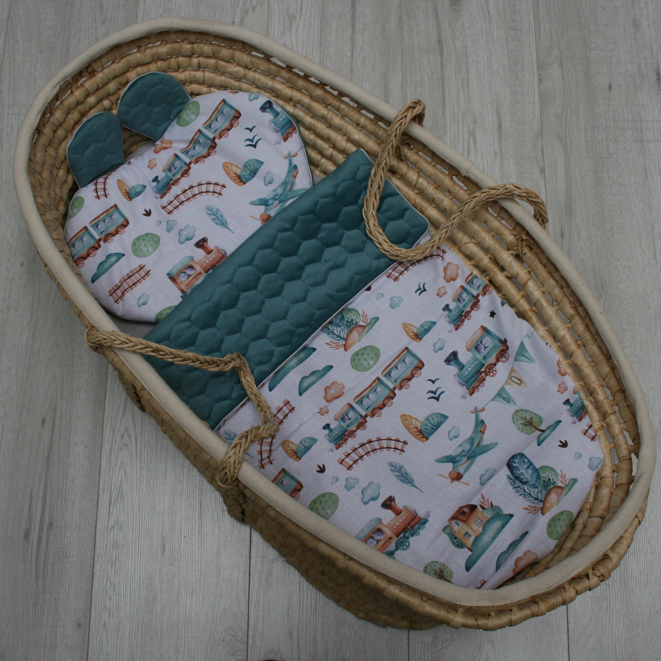 Комплект можно использовать как постельное белье в люльке, корзине Моисея, кроватке или в коляске во время прогулок.< /п>