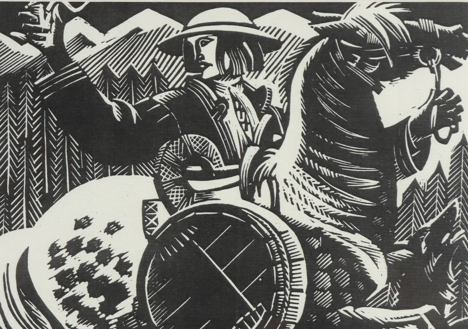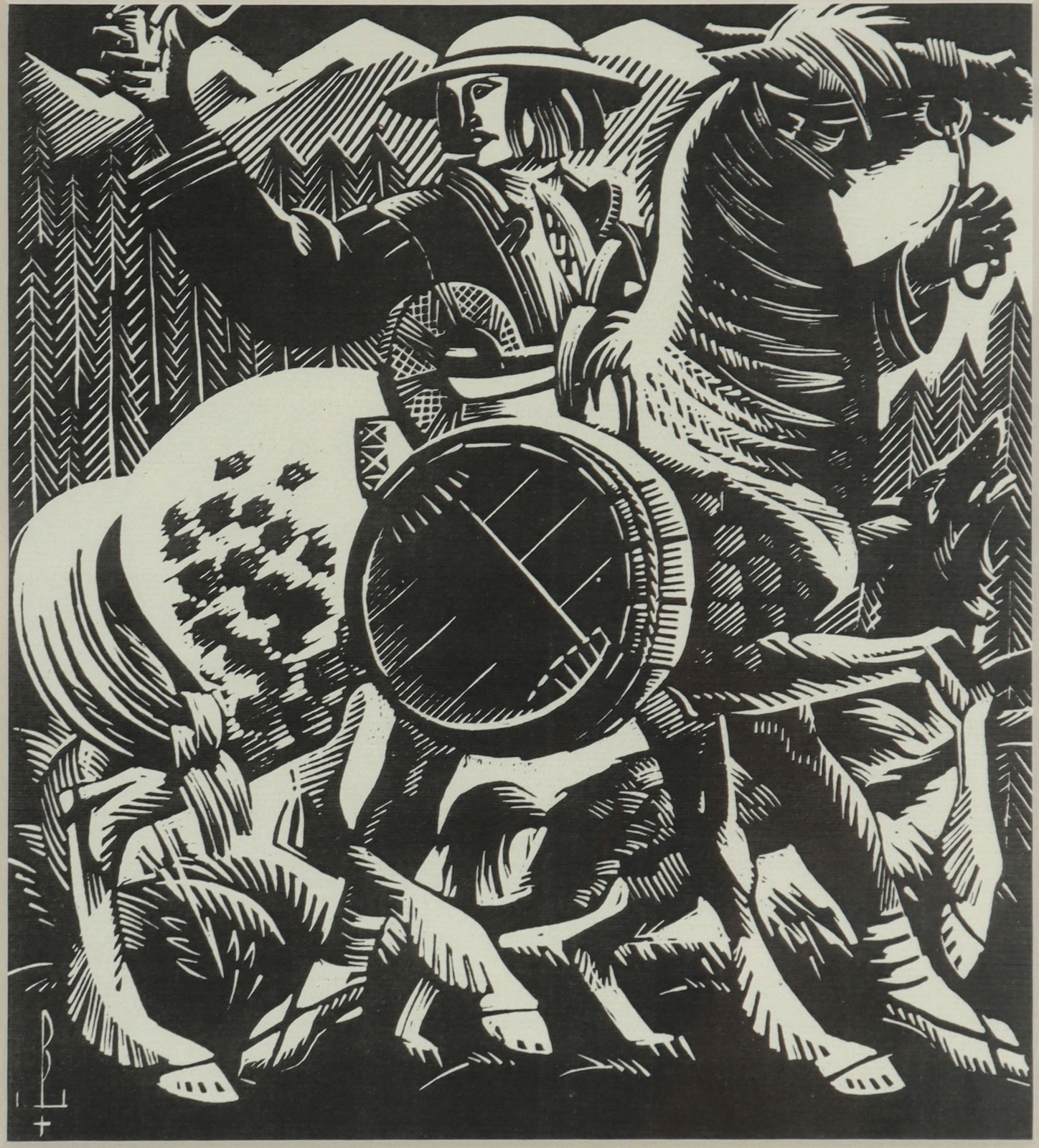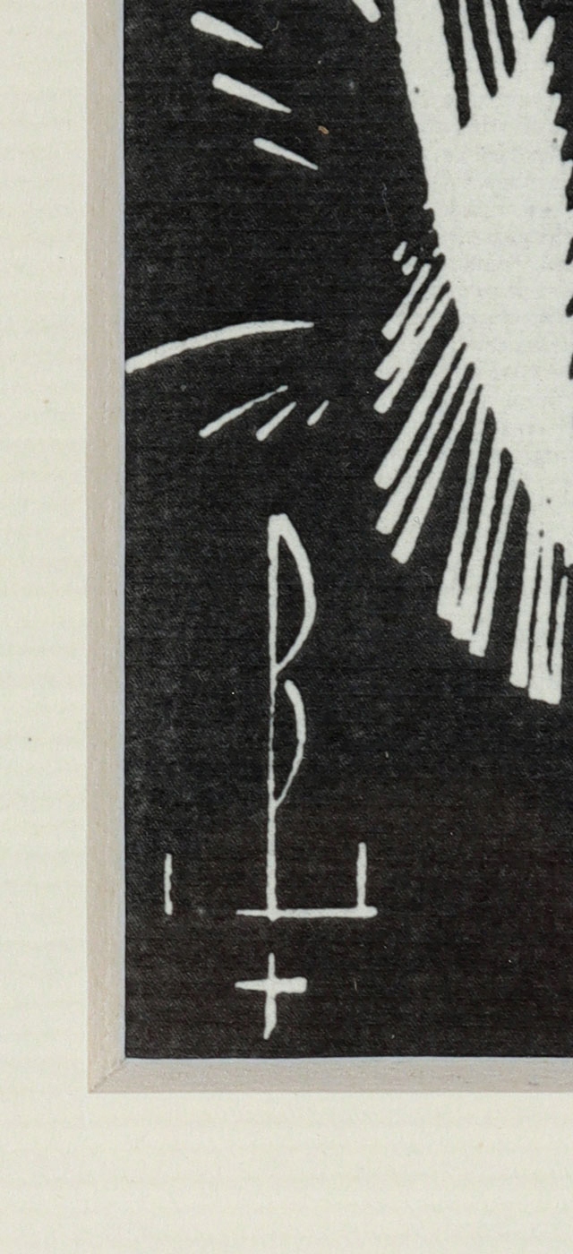 Техника: ксилография/бумага. Работа подписана с монограммой на блоке в нижнем левом углу композиции.