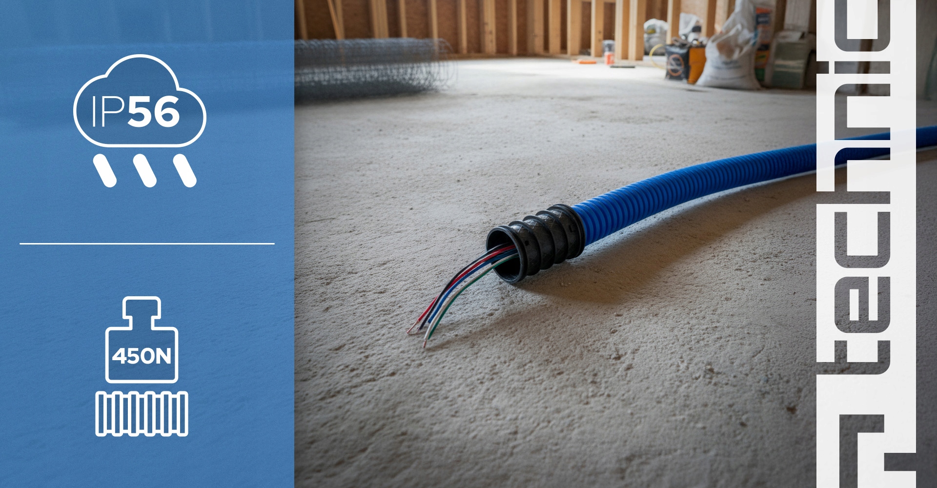 - высокая механическая устойчивость 450N, герметичность IP56 и устойчивость к ультрафиолетовому излучению – идеально подходят для использования в грунте и бетоне.