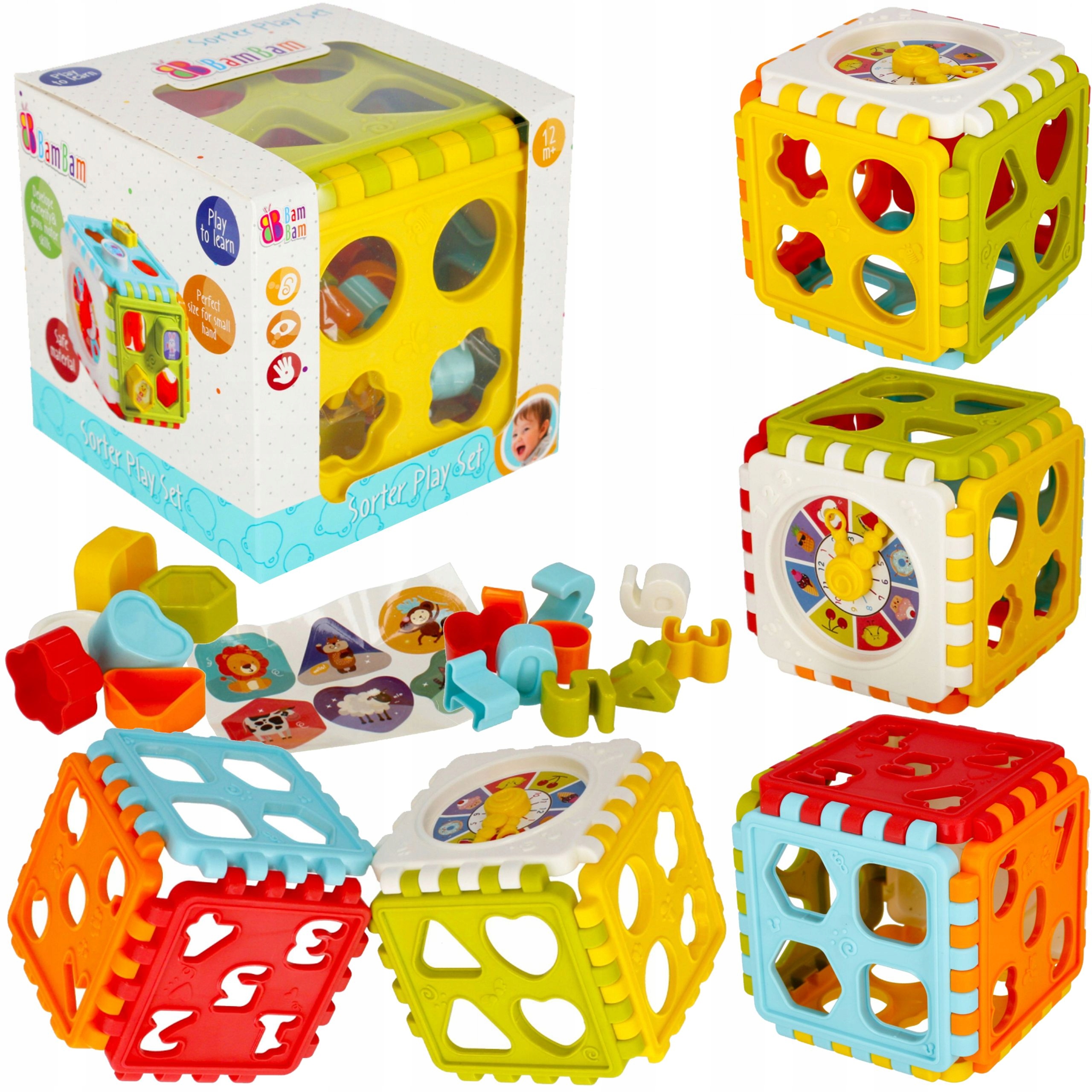 EDUKACYJNA ZABAWKA KOLOROWA KOSTKA SORTER KSZTAŁTÓW ZEGAR DLA MALUCHA