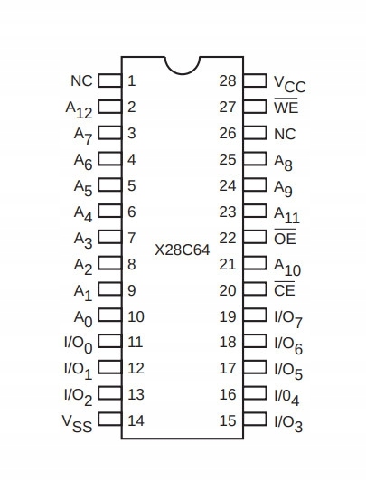 EEPROM 28C64: 64K память (8K x 8bit), DIP28
