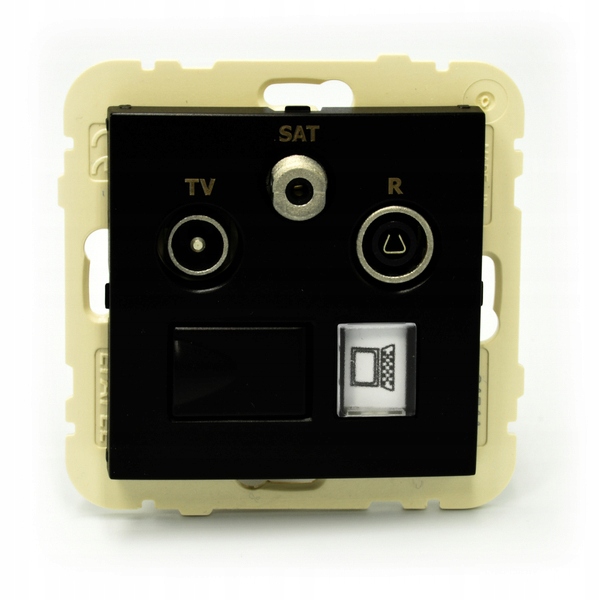 Мультимедийная розетка для спутниковой антенны с модулем RJ45, категория 6, с местом для оптоволоконного модуля, черный p>