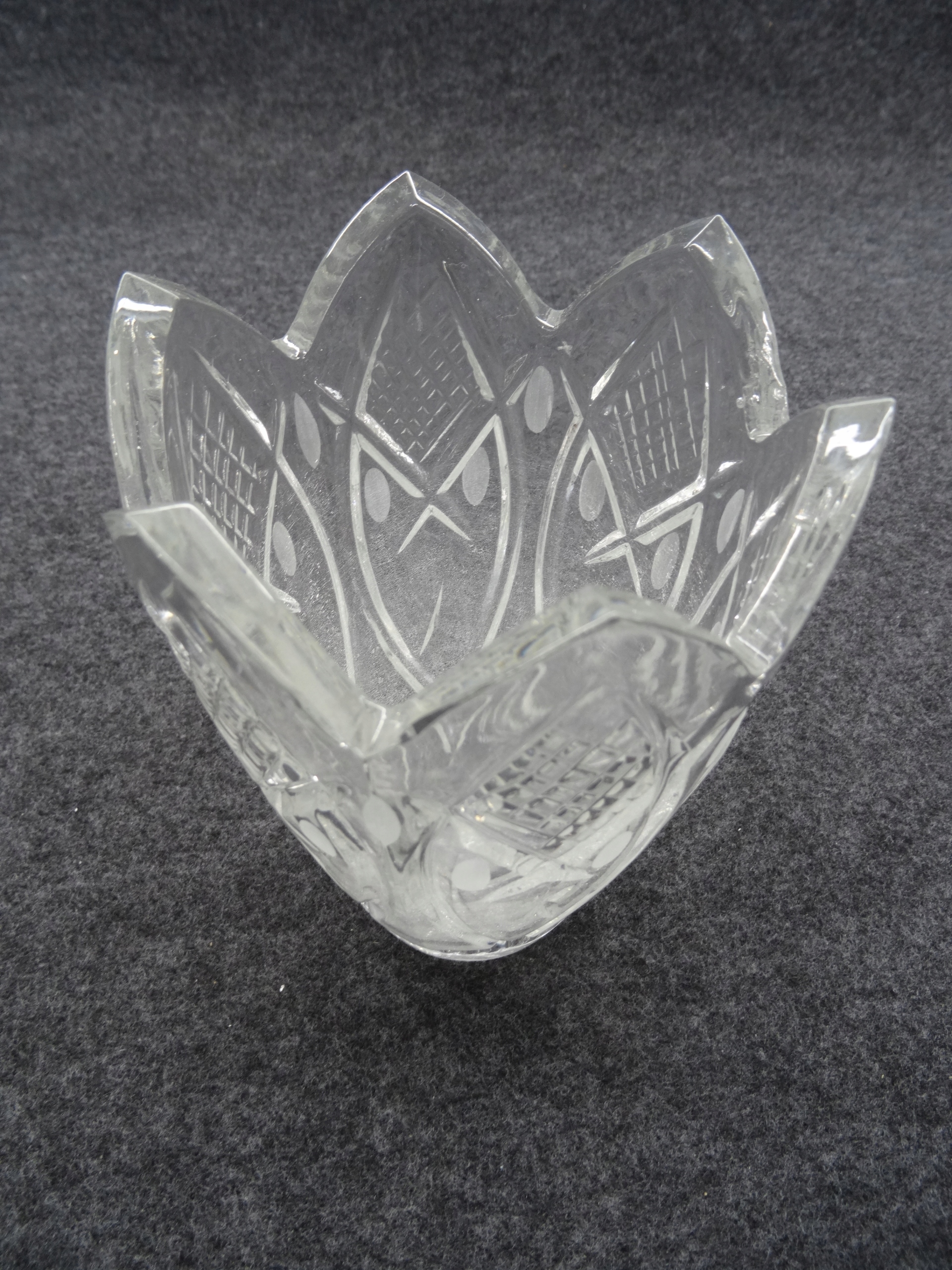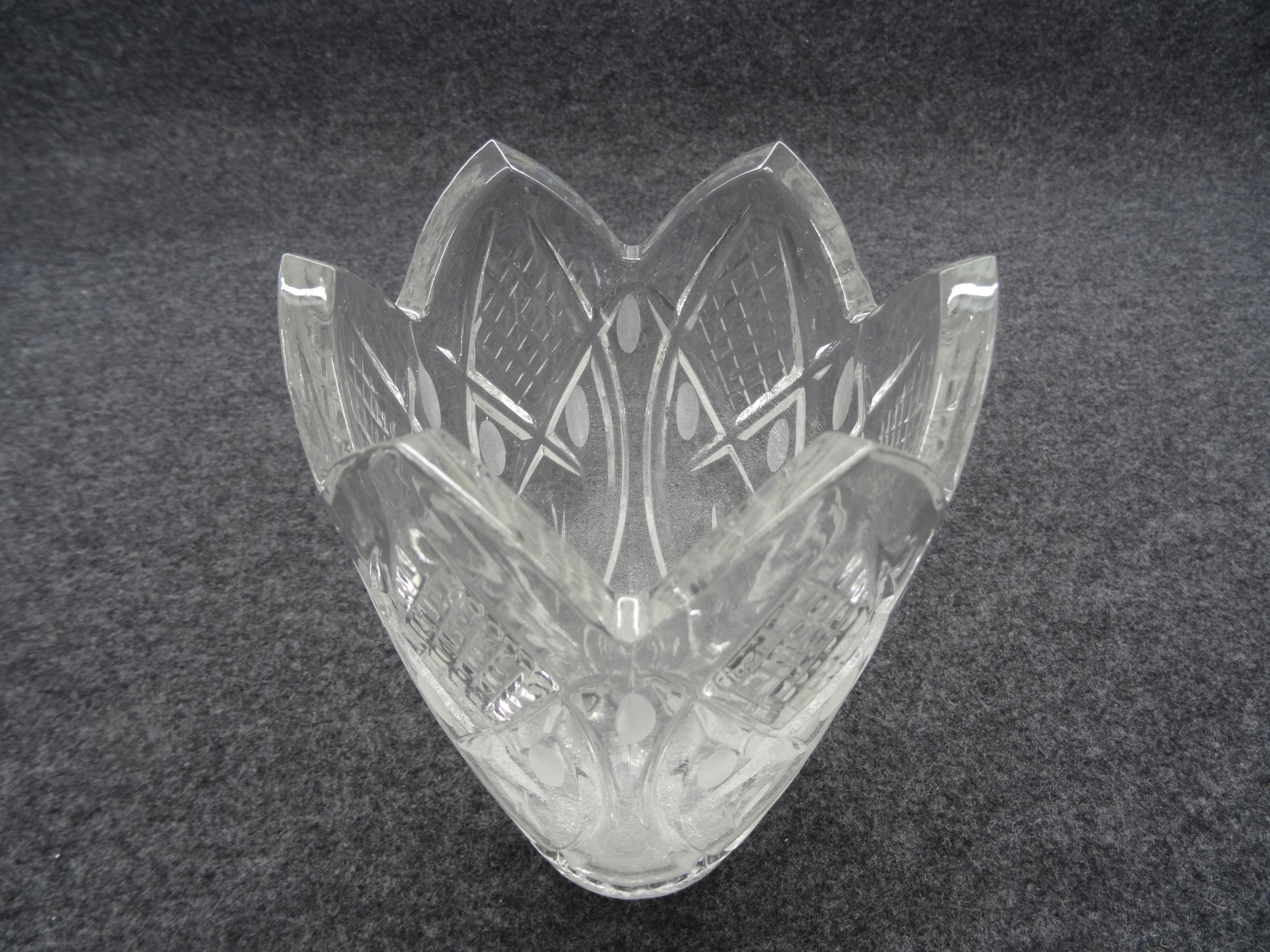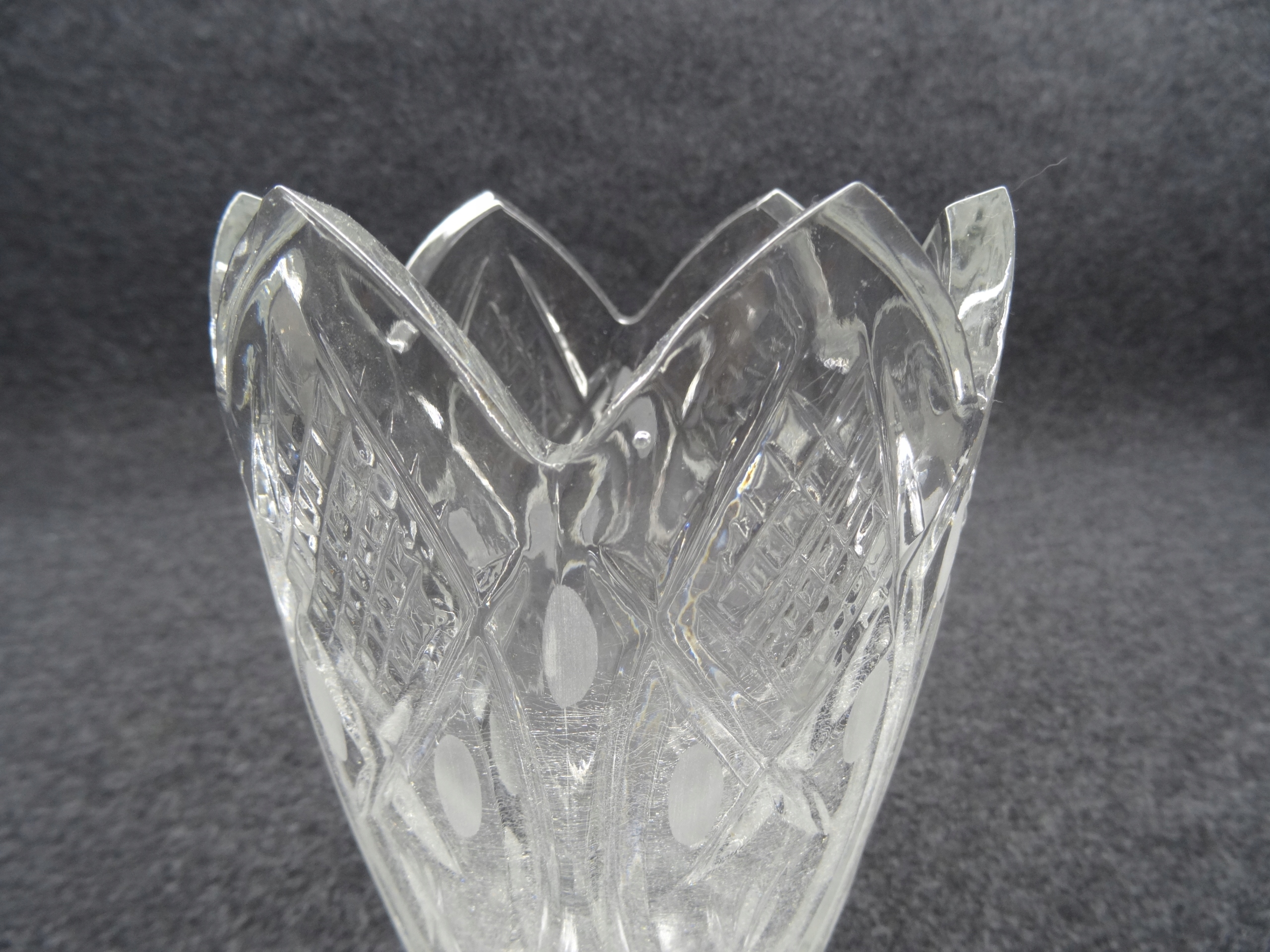 стеклянная ваза с эффектом потрескавшегося ледяного стекла. Край прозрачной стеклянной вазы.