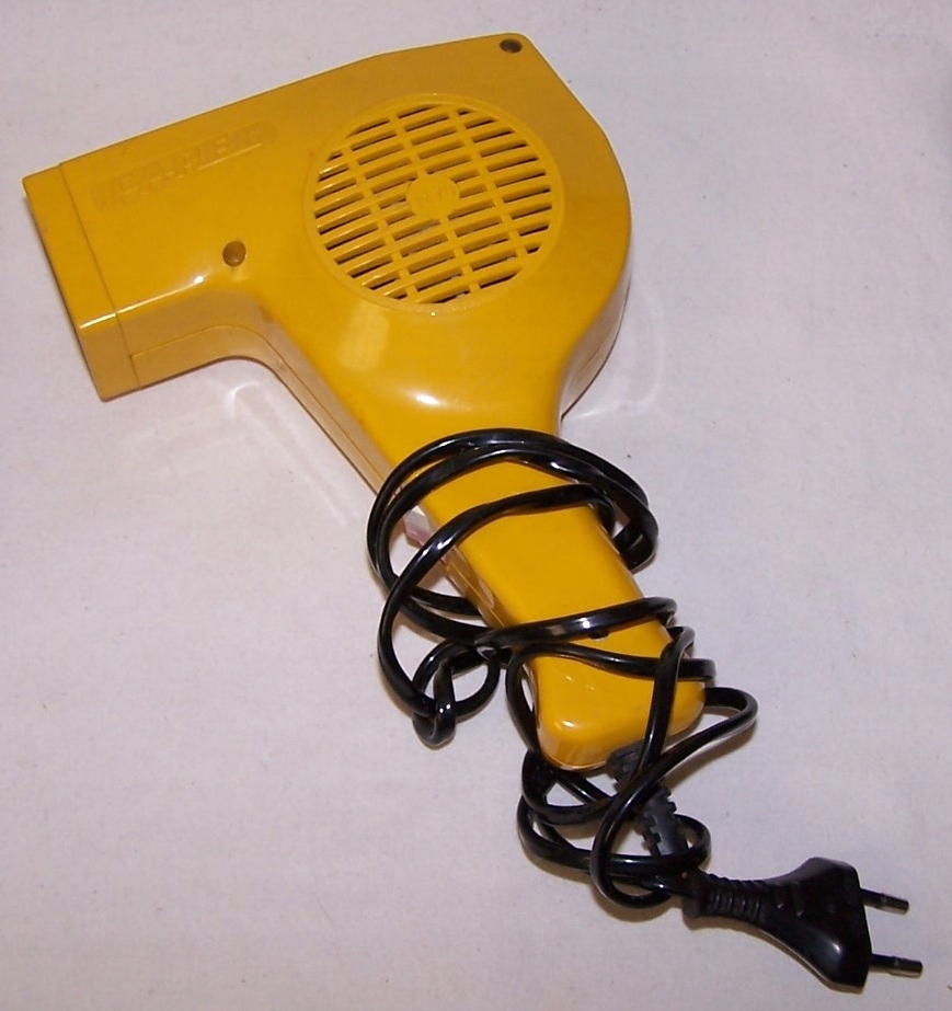 . По наборе. волосы. Современный, вечный дизайн, интенсивный, сильный желтый цвет, переключатель/выключатель, длинный кабель заканчивался заглушением для двух контактов. Это также интересный образец для коллекции старых устройств, необычное украшение каждой ванной комнаты или парикмахерской. Из-за превосходного состояния, идеальная вещь для подарка :-)