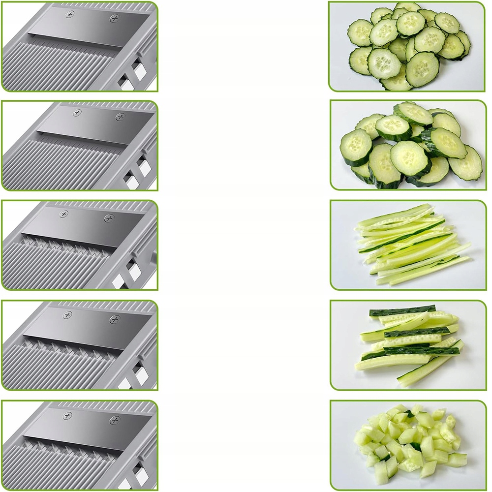 - Наша модернизированная нарезка-мандолина с увеличенным входом и большей вместимостью позволяет безопасно нарезать, очищать, нарезать кубиками и шинковать за считанные секунды, с любой регулировкой толщины от 0,1 до 8 мм.