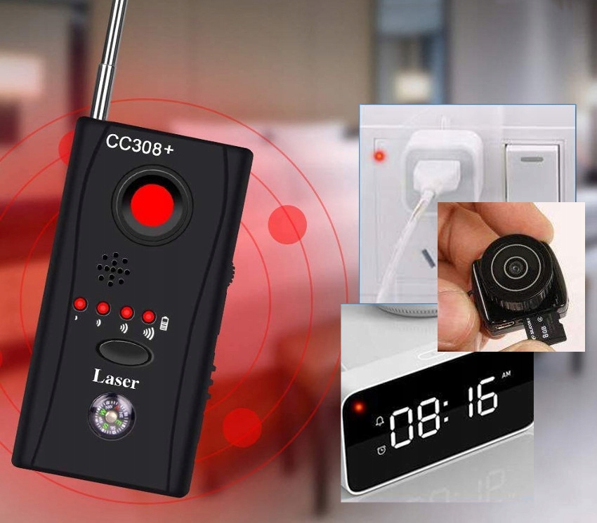Если ДА, то у нас есть современное устройство для обнаружения прослушки и скрытых камер. Предлагаемый детектор CC308+ очень удобен в использовании, имеет выдвижную антенну, два типа детекторов обнаружения и четыре типа сигнализации. Благодаря наушникам, входящим в комплект, он может очень незаметно обыскивать любую комнату. После этого вы услышите в наушниках сигнал об обнаружении прослушки.