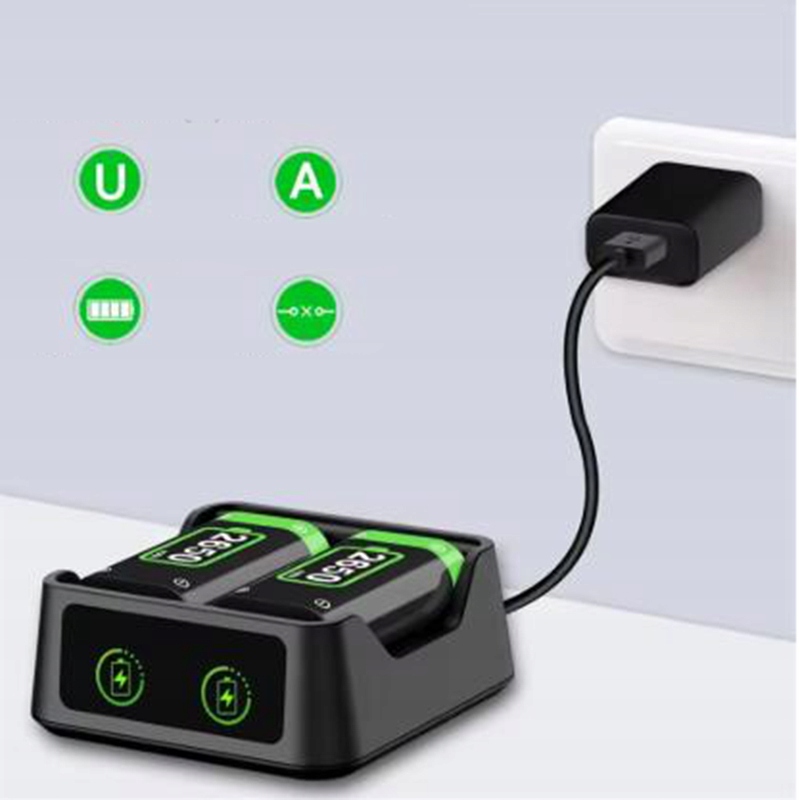 оснащен двумя зарядными розетками. Устройство может зарядить две батареи контроллера Xbox одновременно, повышая эффективность зарядки и гарантируя, что контроллеры всегда будут полностью заряжены. - Полный заряд обычно длится всего 2,5 часа, что сокращает время ожидания и позволяет игрокам быстрее возвращаться в игру.