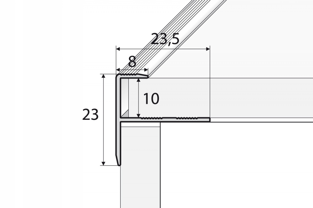 Профиль лестницы Affertor A85 представляет собой элегантный и функциональный отдел, предназначенный для защиты краев лестницы и эстетической отделки поверхностей, выложенных глазурью. Изготовленный из высококачественного алюминия, профиль обеспечивает долговечность и устойчивость к ежедневному потреблению.