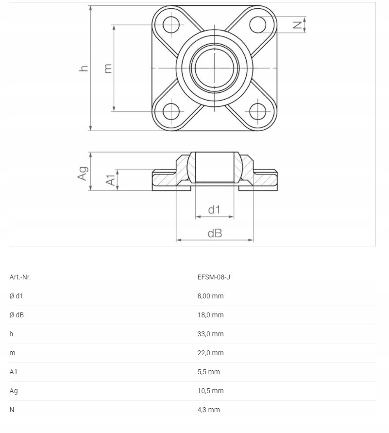 EFSM-08-J Підшипник фланцевий на вал діаметром 8, IGUS