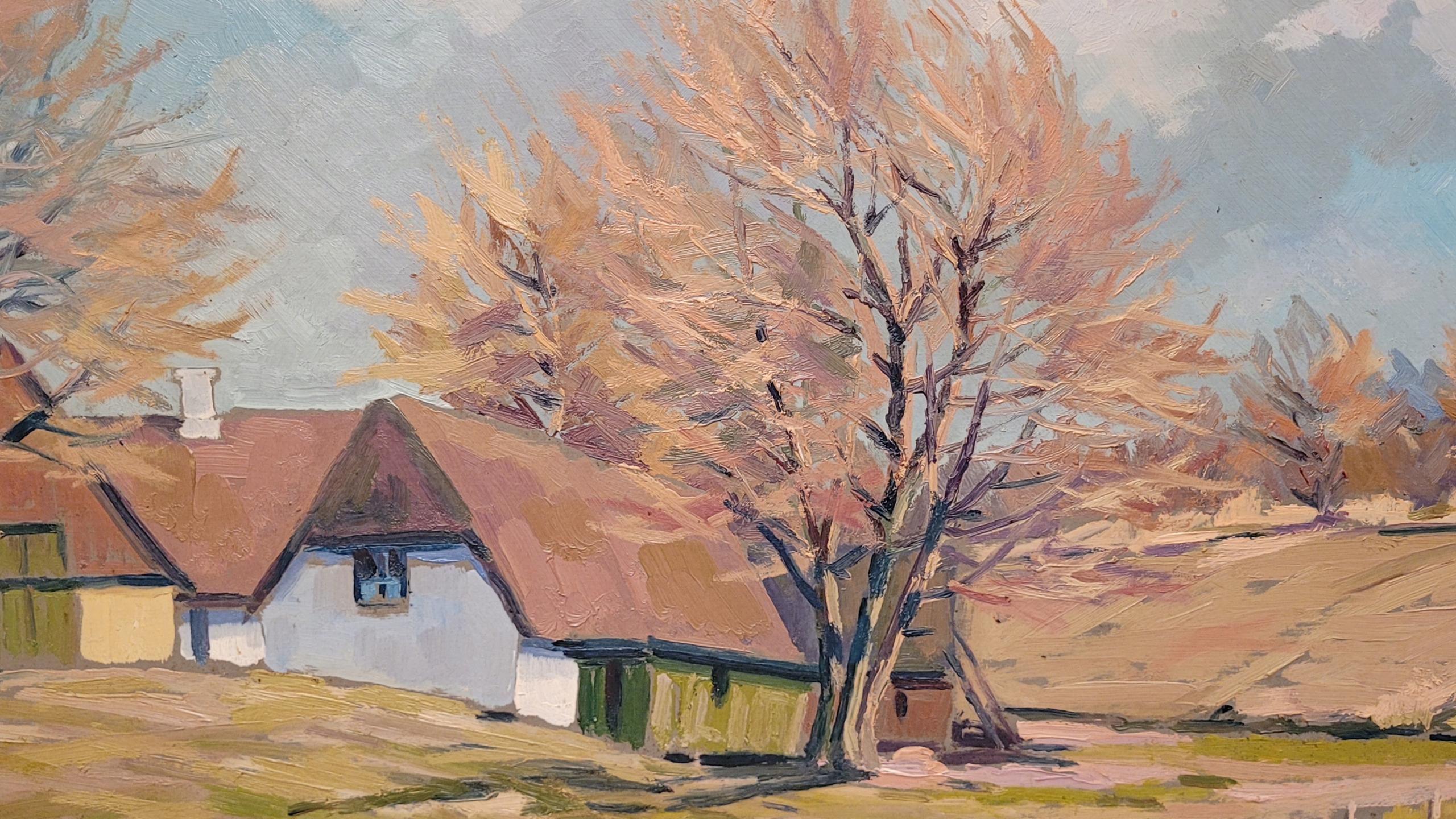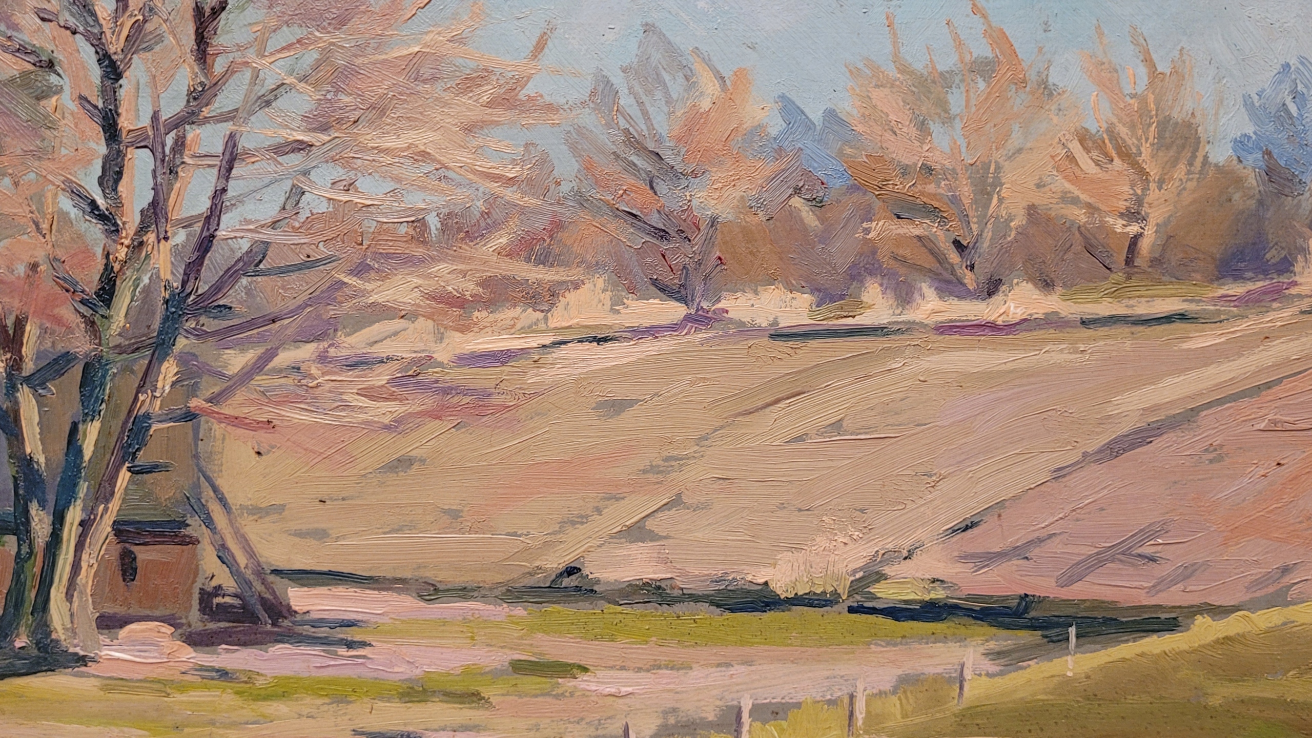 Предмет продажи - красивая, старинная картина маслом «СЕЛЬСКИЙ ПЕЙЗАЖ».