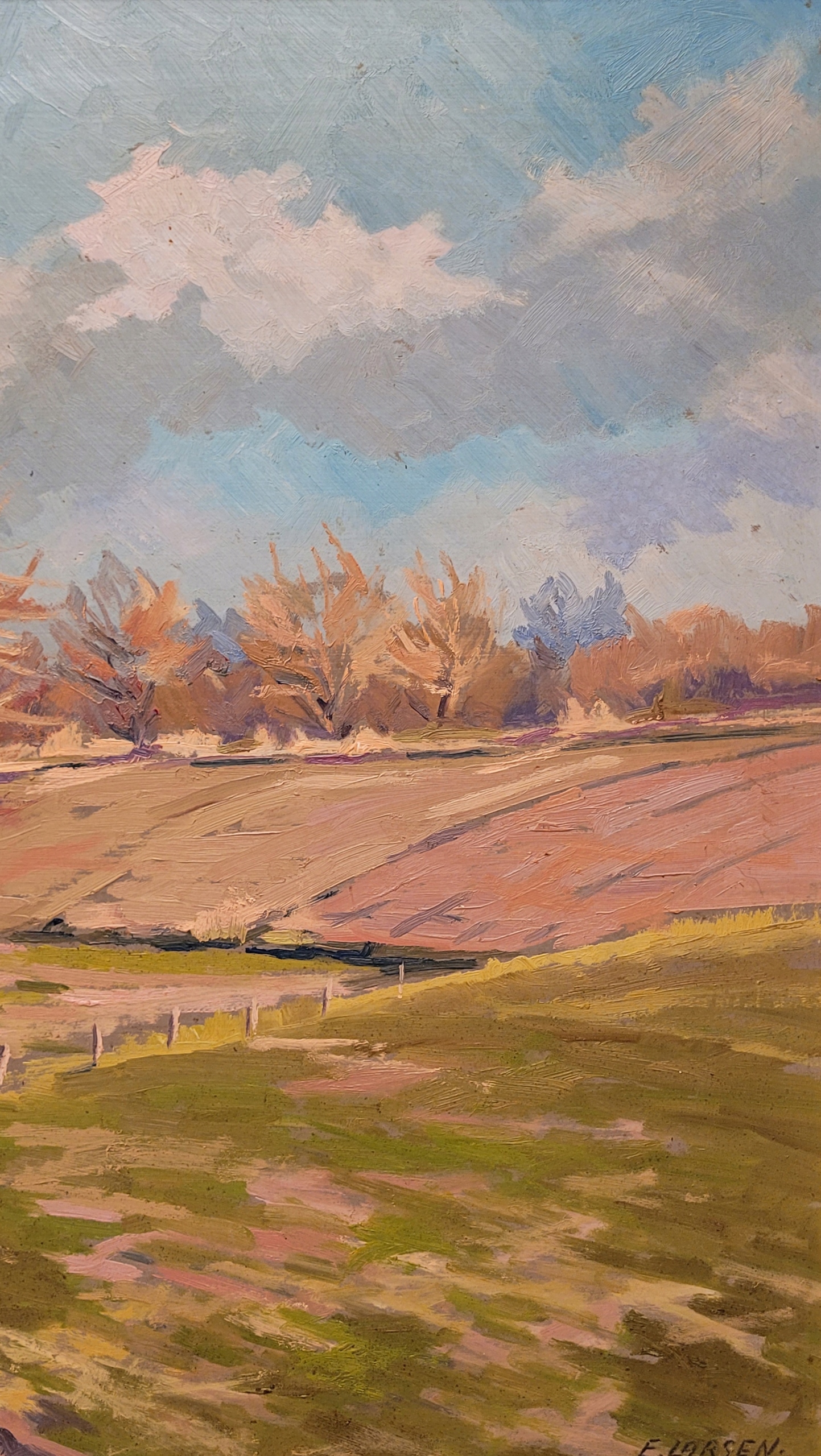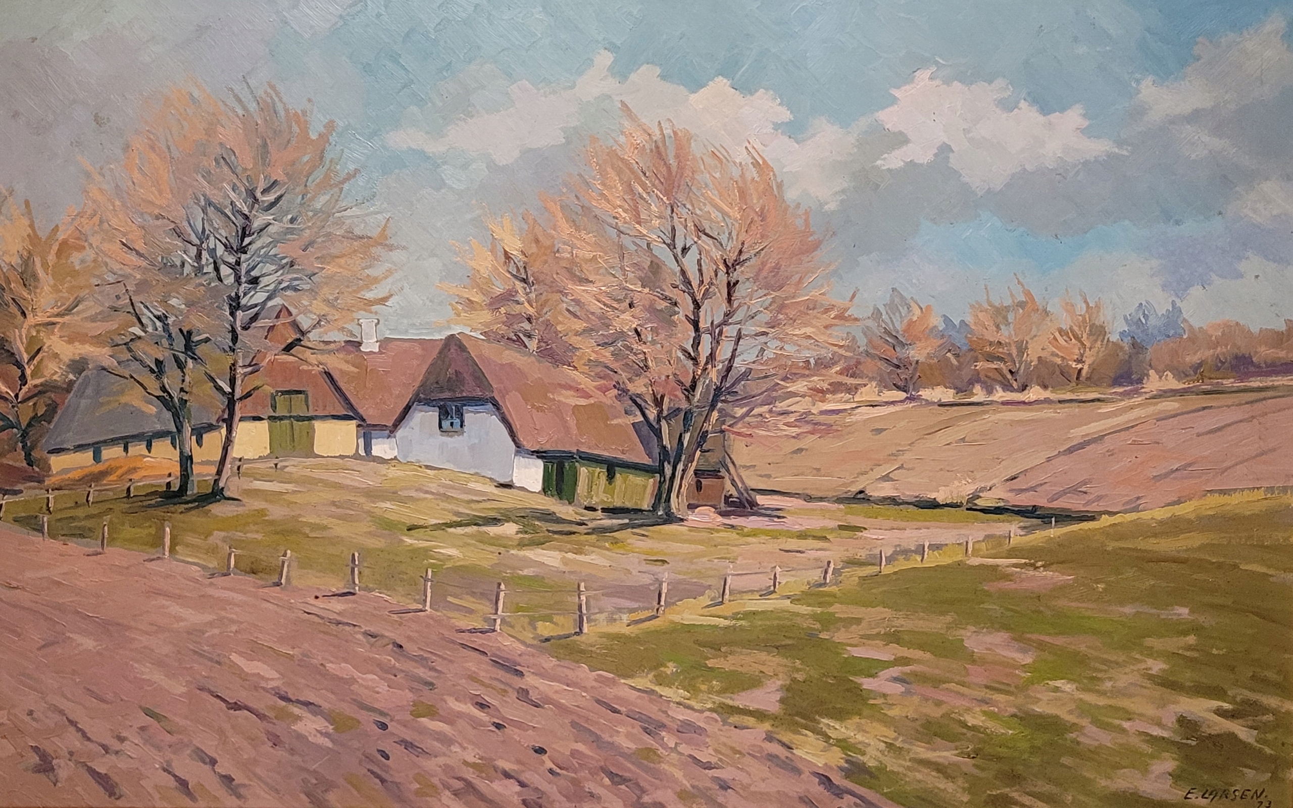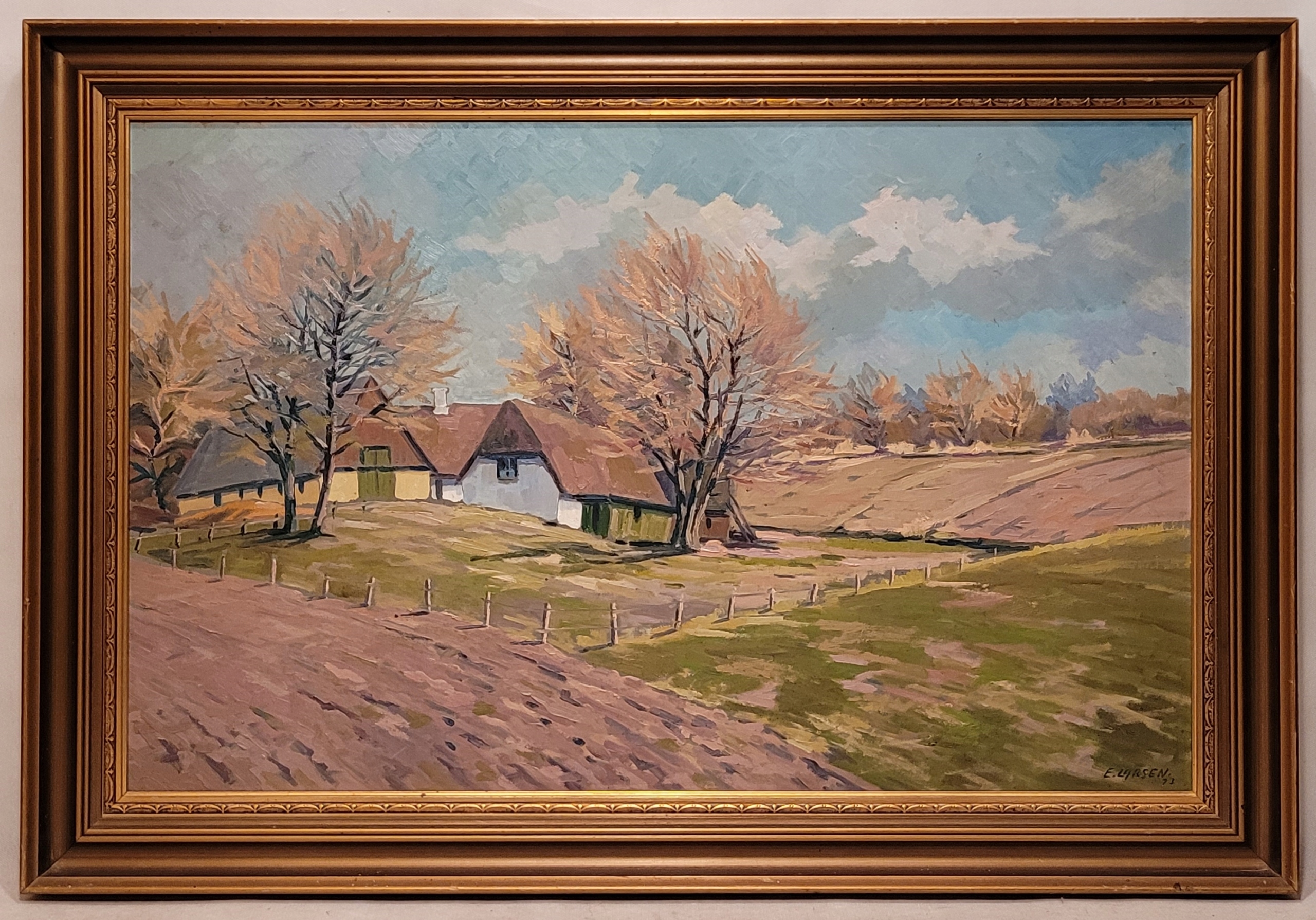 ЭГОН ЛАРСЕН — «СЕЛЬСКИЙ ПЕЙЗАЖ», красивая картина маслом 1973 года.