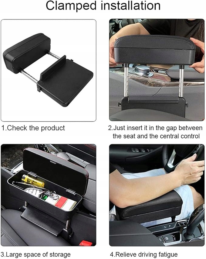 - ★ Простая установка: подлокотник можно разместить между центральной консолью автомобиля и прорезью сиденья. Обивка подлокотников на центральной консоли состоит из высококачественных ручек и кнопок из нержавеющей стали и регулируется по высоте. Легко собрать без инструментов.