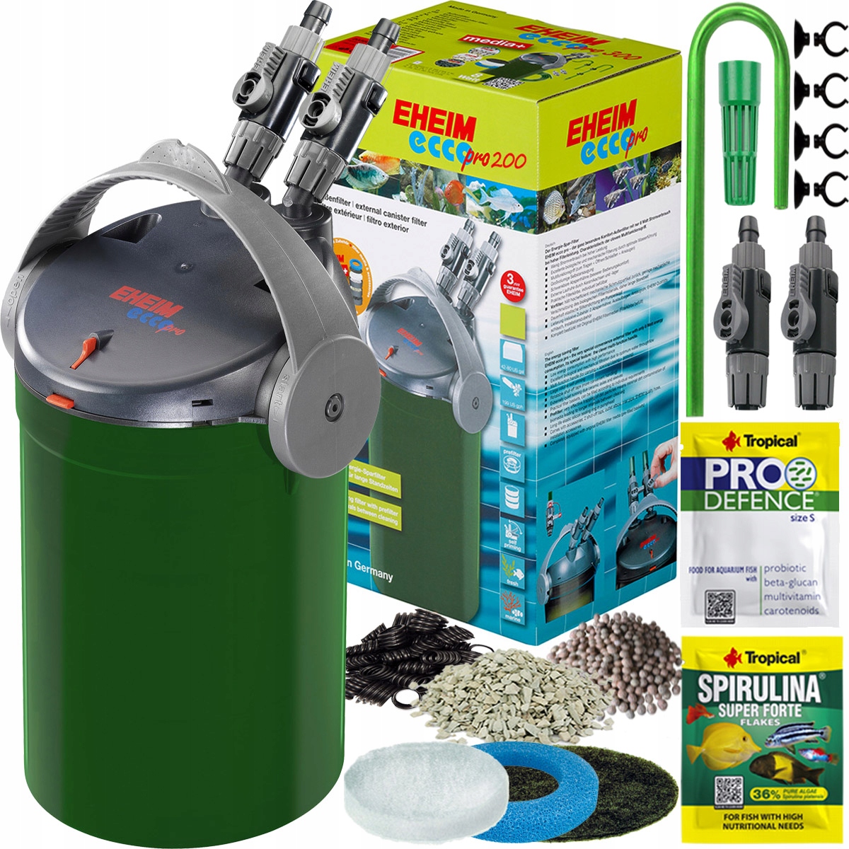 EHEIM Ecco Pro 200 — это ковшовый фильтр последнего поколения, улучшенная версия нашумевшего Ecco Comfort. Модифицированная взаимосвязанная система Корзины для фильтров гарантируют скорость по сравнению с предшественником эксплуатация и бесперебойное обслуживание. Доминирующей чертой является энергоэффективность (5 Вт) и простота использования. Отличительный элемент Ecco Pro в отличие от всех других фильтров имеет многофункциональный рычаг. Он используется для переноски фильтра и всасывания воды при запуске фильтра (должен быть энергично наклоните его на 80 градусов) и на мгновение уберите головку очистка ведра. Фильтр оснащен оригинальные фильтрующие материалы производителя. EHEIM Ecco Pro – очень фильтрующий легко чистить и использовать при сохранении небольших размеров.