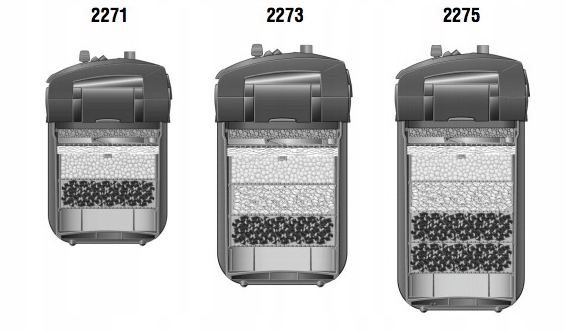 Каждый фильтр серии PROFESSIONEL 4+ имеет фильтр предварительной очистки и, в зависимости от модели, от 2 до 4 корзин. В стоимость входят оригинальные картриджи EHEIM. В комплект префильтра входит губка, в корзинах — просубстрат, промох (2271) и биомох (2273 и 2275).