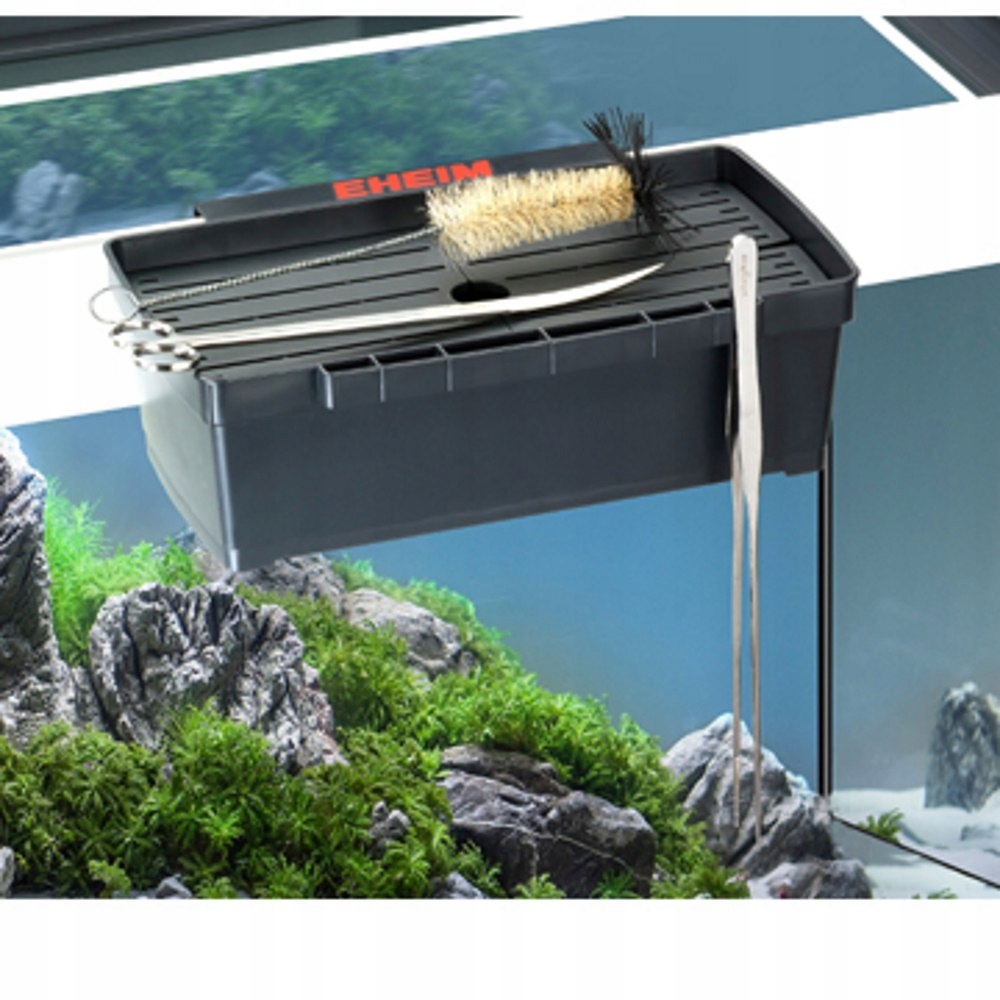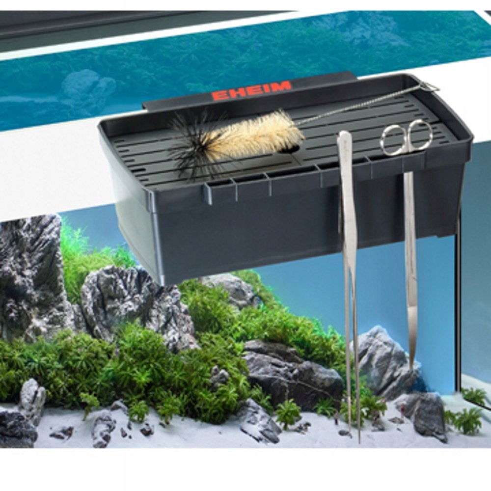EHEIM MultiBox — это многофункциональный контейнер, предназначенный для подвешивания на аквариуме для обслуживания без помощи рук.