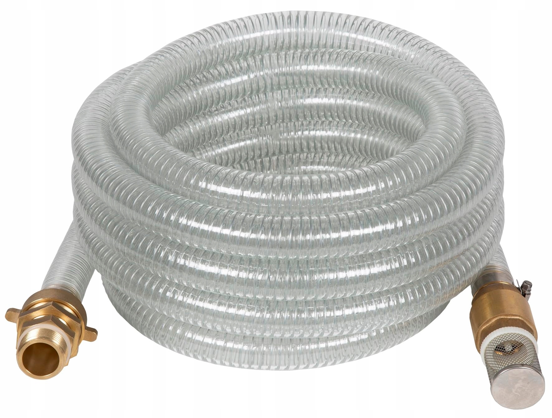 Поставляется с двумя стальными хомутами для надежного крепления. В комплект входит латунный ниппель с резьбой AG 33,3 мм (1 дюйм). Соединение из латуни IG 42 мм (1 1/4 дюйма). 7 м в длину. Всасывающий шланг стабильной формы диаметром 25 мм.