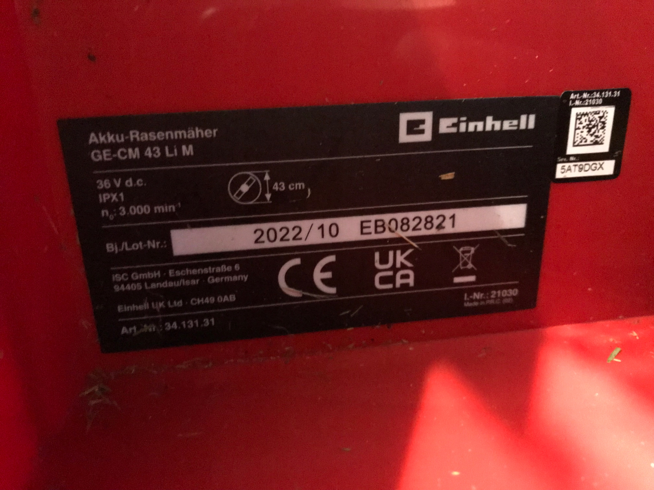 Einhell GE-CM 43 LI 3413131 /Body Actatue To Dater