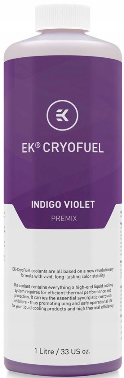 ek-cryofuel premix, Indigo Violet готова к использованию охлаждающей жидкости для систем водяного охлаждения в цвете EKWB. > 1000 мл предварительной фиолетовой охлаждающей жидкости