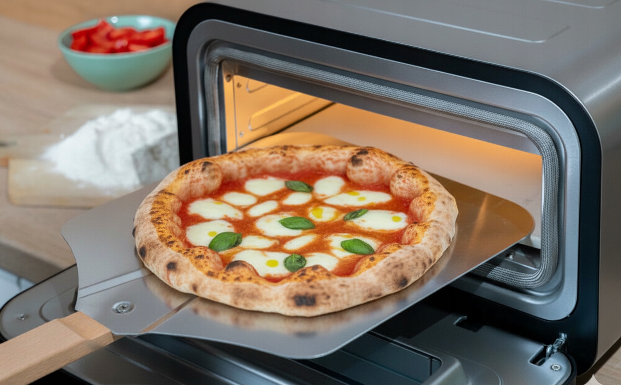 Диапазон температура от 80 ° C до 450 ° C заставляет печь работать не только для пиццы, но и для выпечки хлеба, запеканки, вы можете легко подготовить ароматическую фокачча