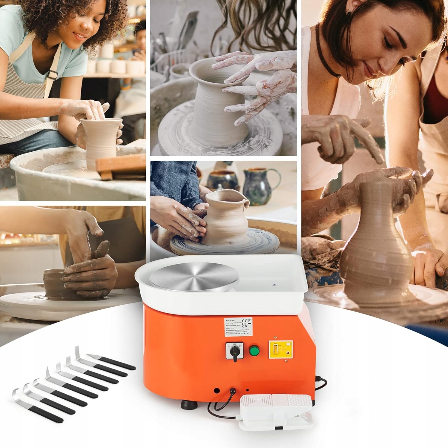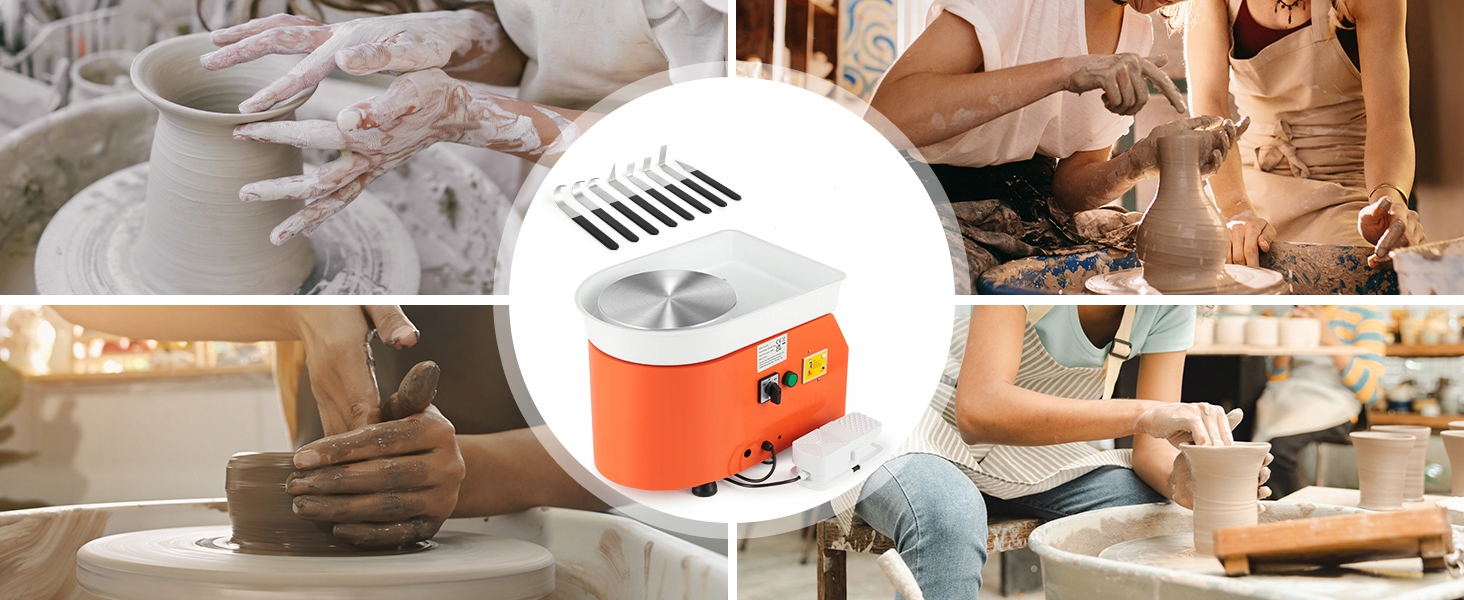 Скульптура, такая как профессиональное колесо гончара, поставляется с 8-часовым набором инструментов для формирования и резьбы из глины, поэтому вы можете немедленно начать производить свои собственные уникальные керамические продукты.