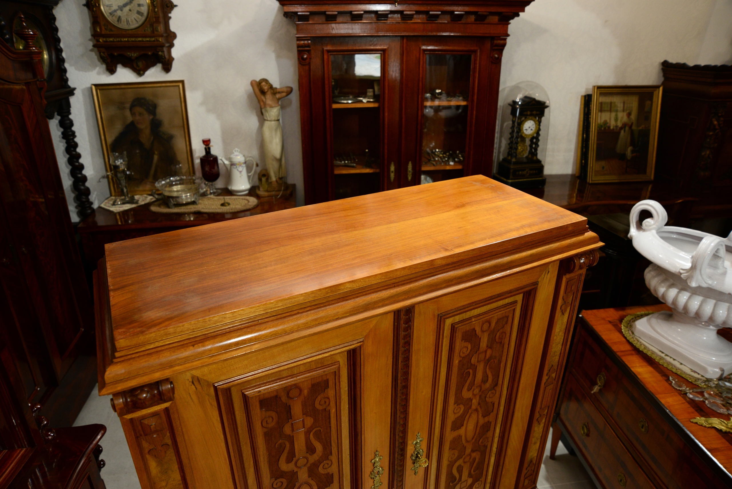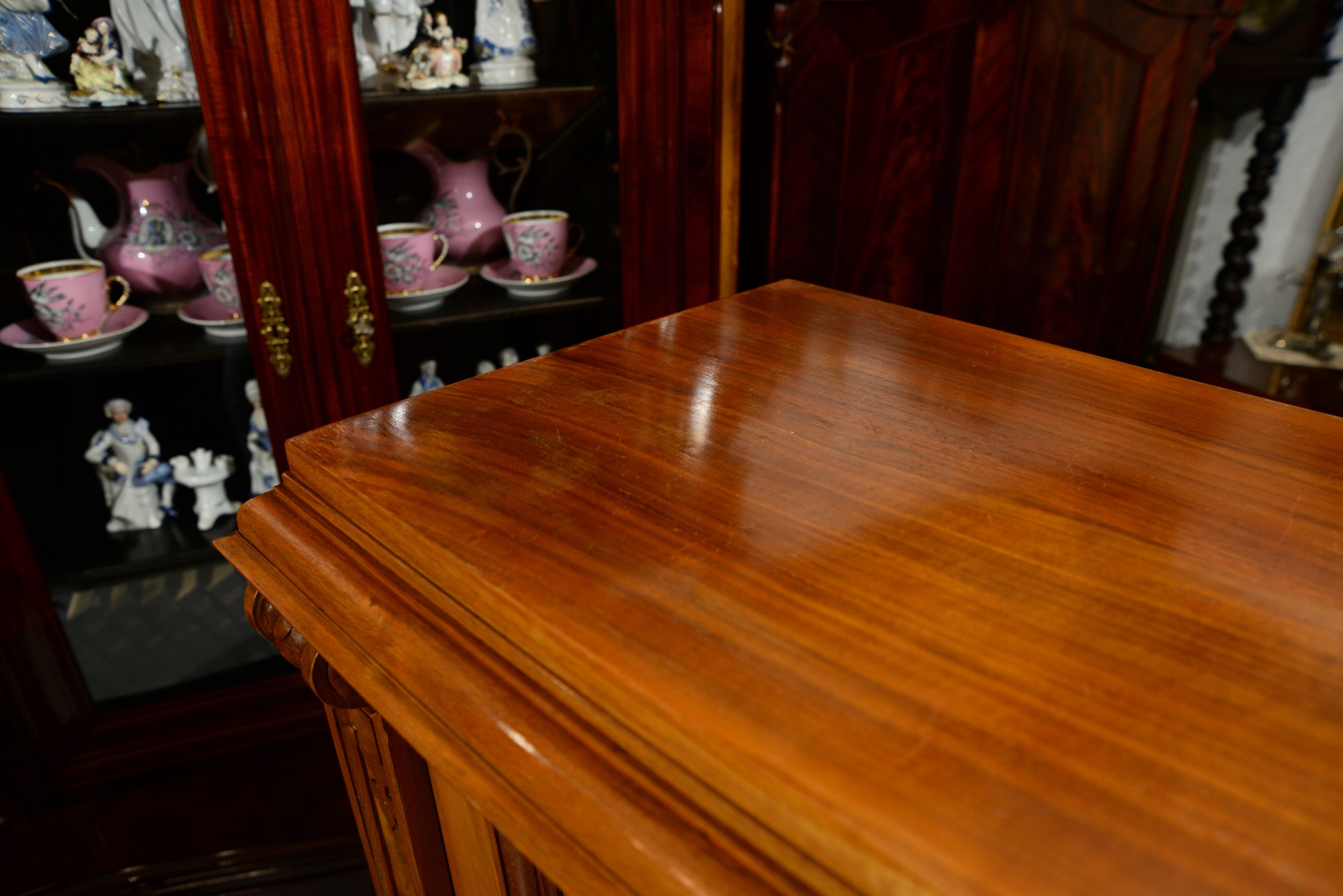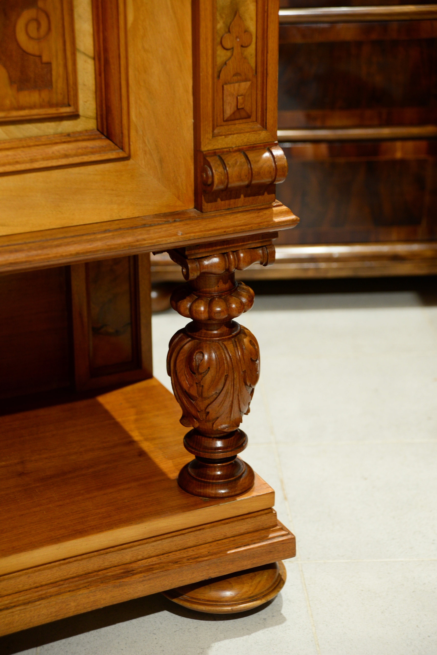 - характерные эклектичные черты, которые мы можем увидеть в мебели, включают богатую лепнину, резные панели, пилястры по бокам дверей, ореховый шпон, богатую фурнитуру.