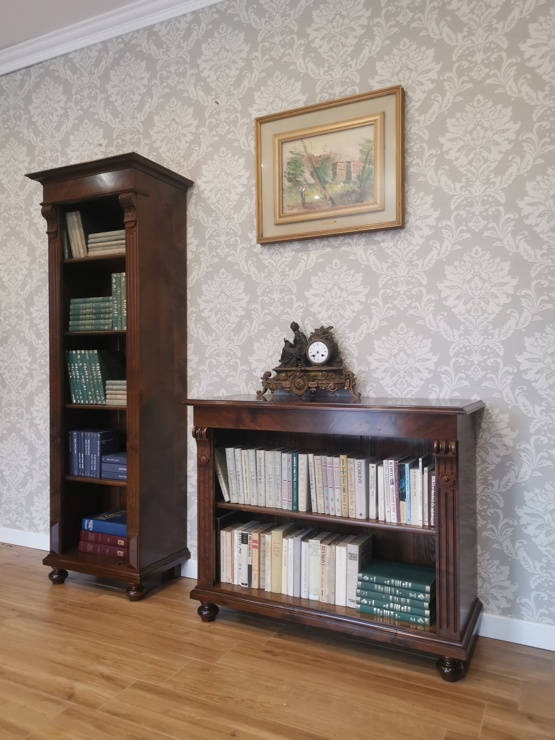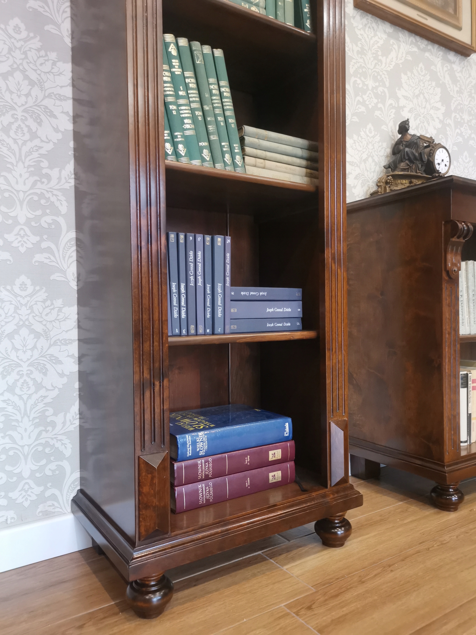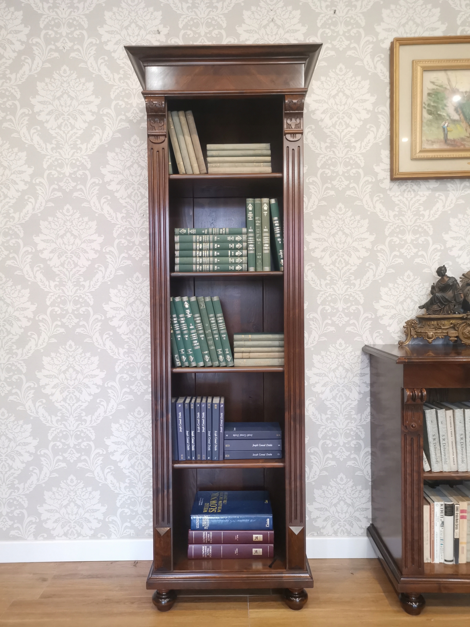 Предлагаем Вам эклектическую полку, облицованную шпоном ореха, окрашенную в цвет ореха и отделанную полуматовым покрытием.