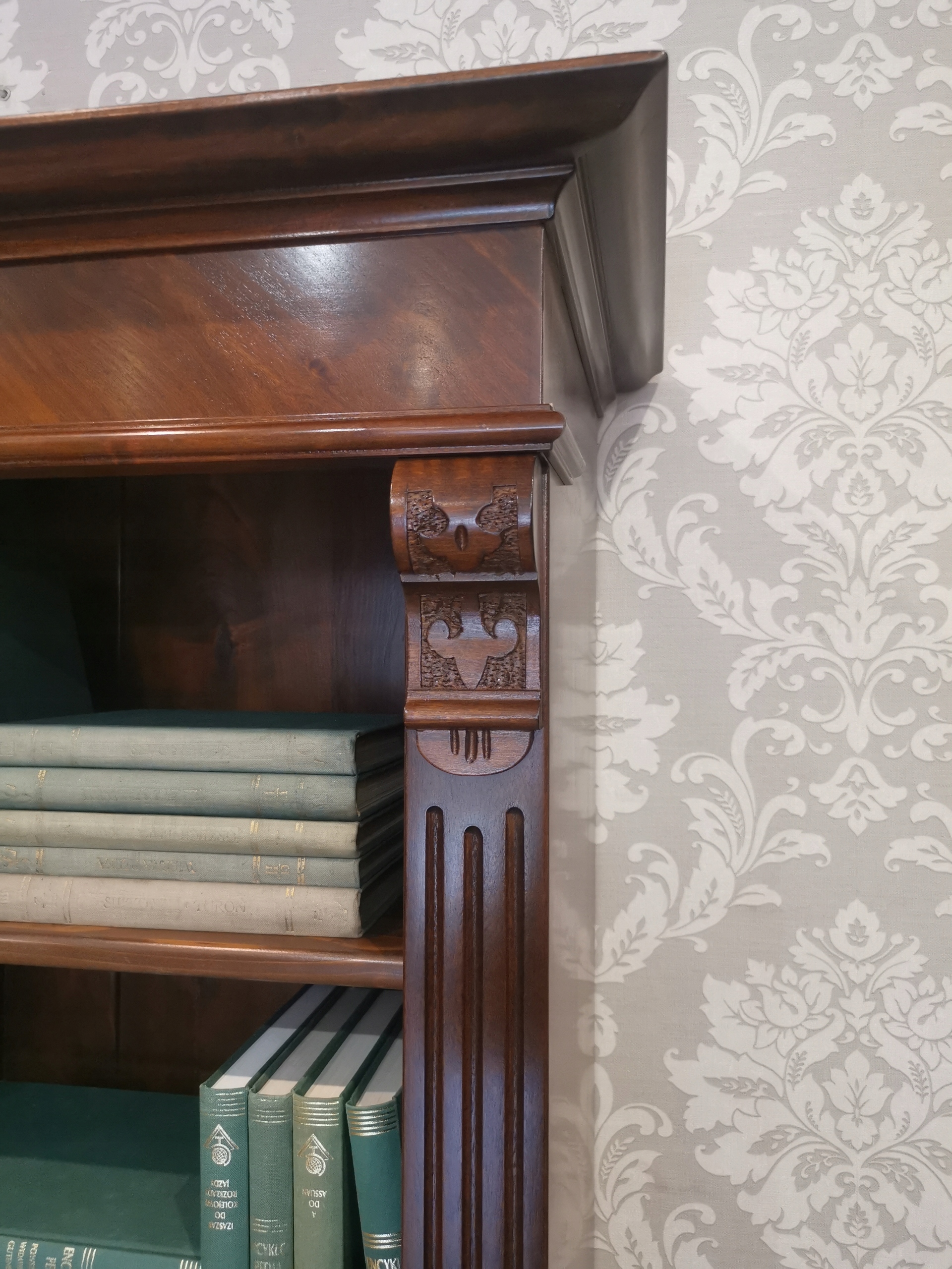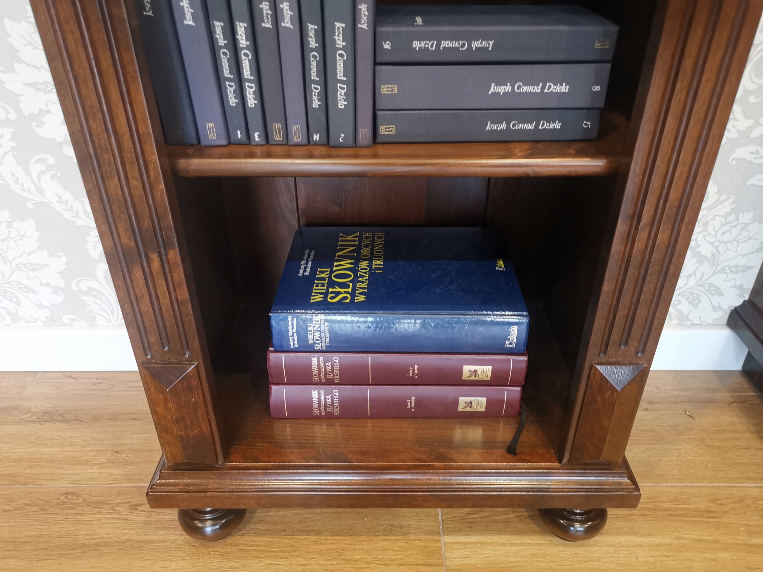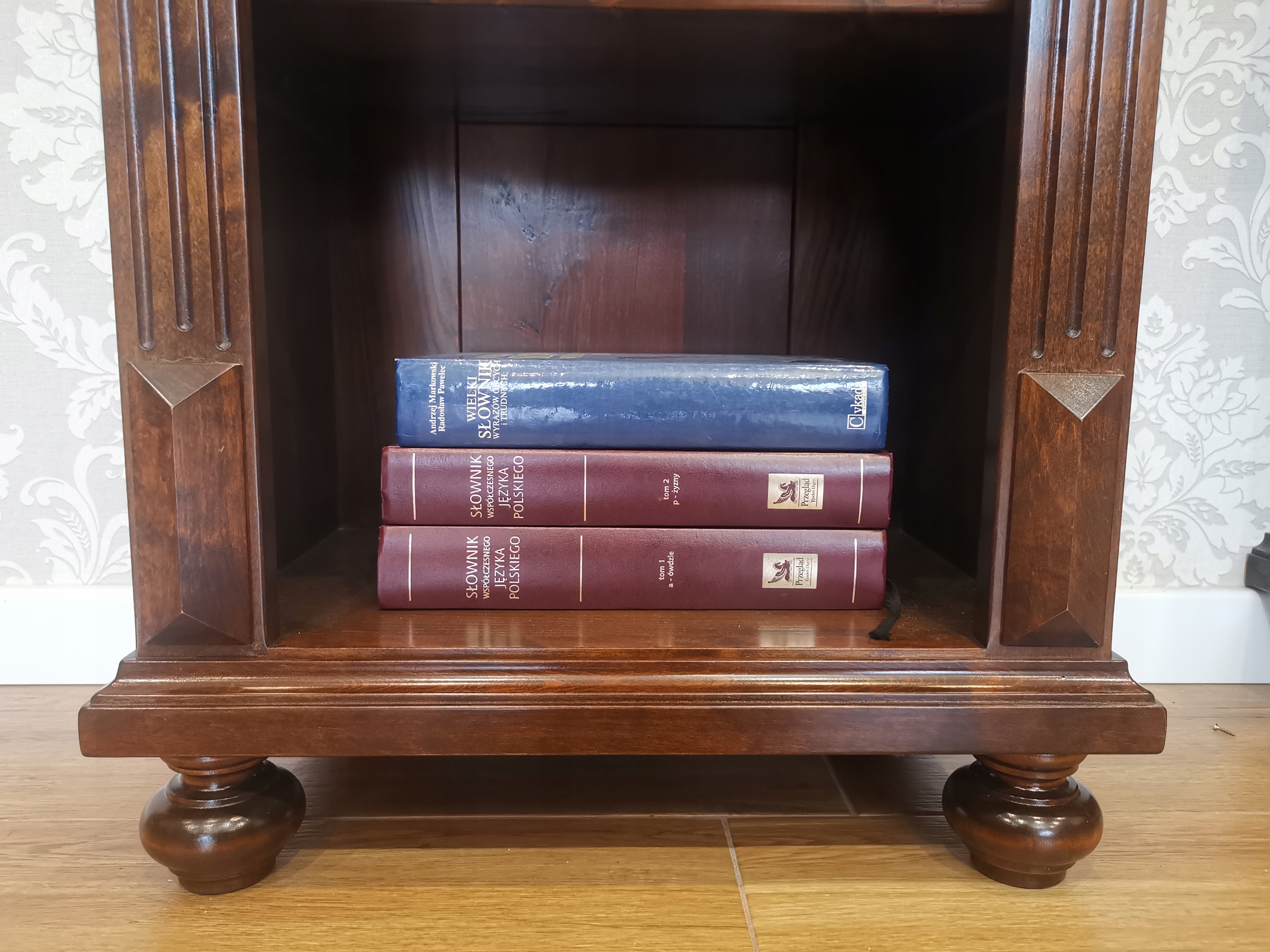 Предлагаем Вам эклектическую полку, облицованную шпоном ореха, окрашенную в цвет ореха и отделанную полуматовым покрытием.