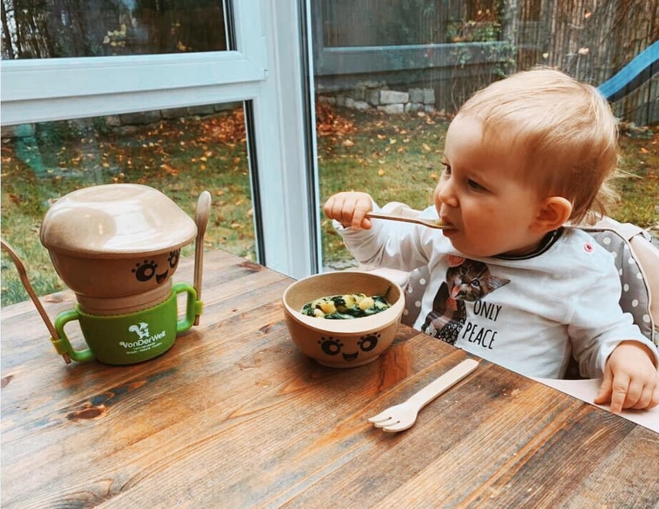 Набор посуды теперь также доступен с дополнительной чашкой без скольжения. Набор посуды для детей и детей изготовлен из натуральных волокон масштабов риса. Свободен от вредных веществ и является биоразлагаемым