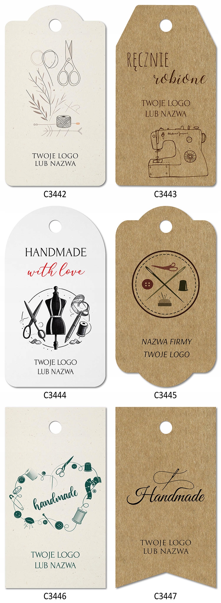 • Вы можете заказать этикетки с любого размера отверстия от 3 мм и без отверстия. Они вешают их струной.