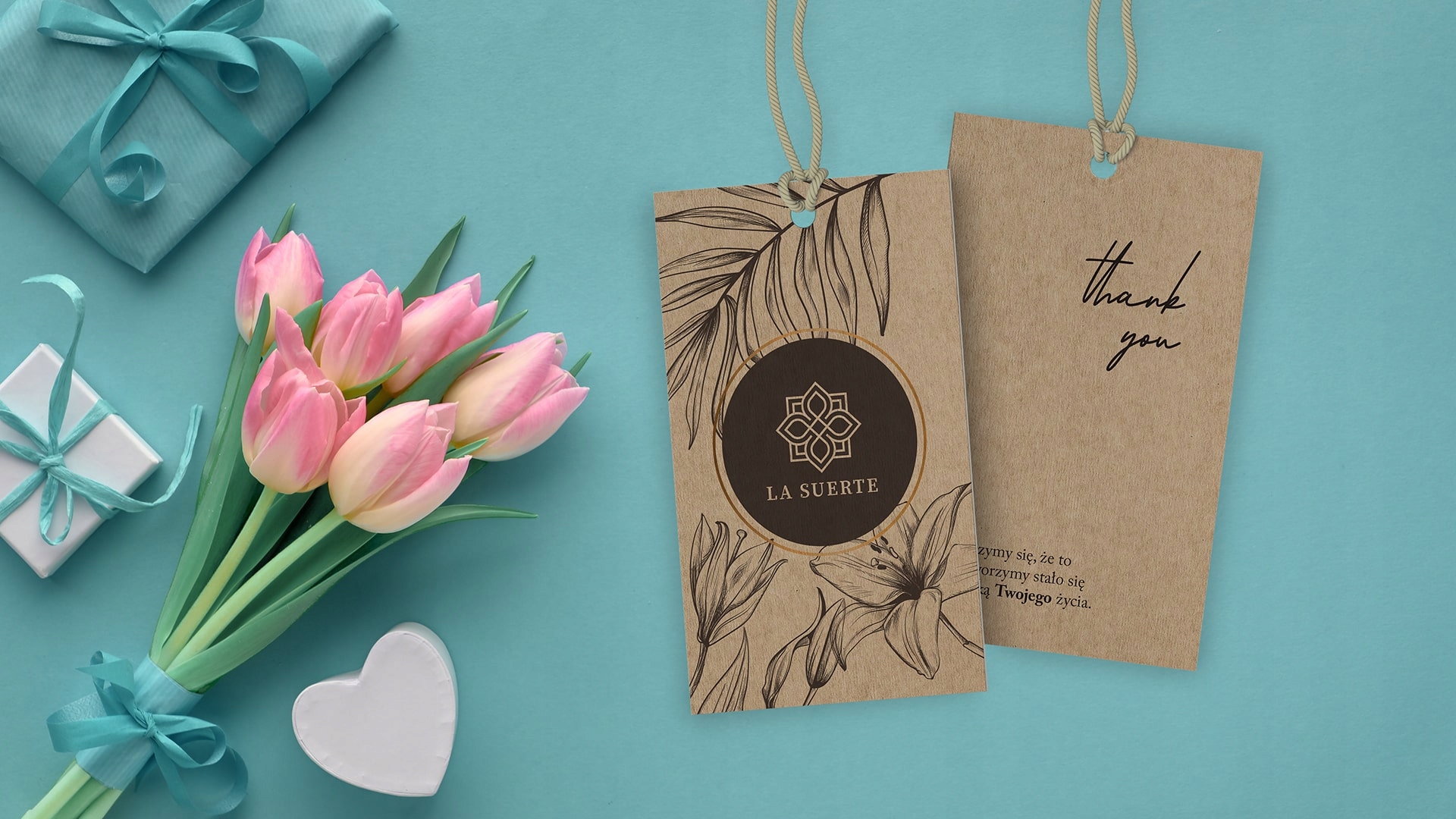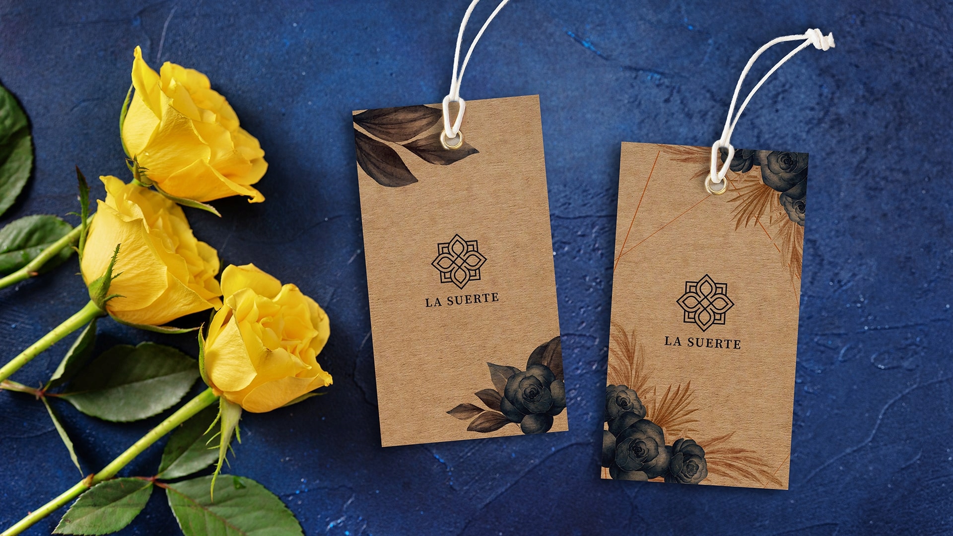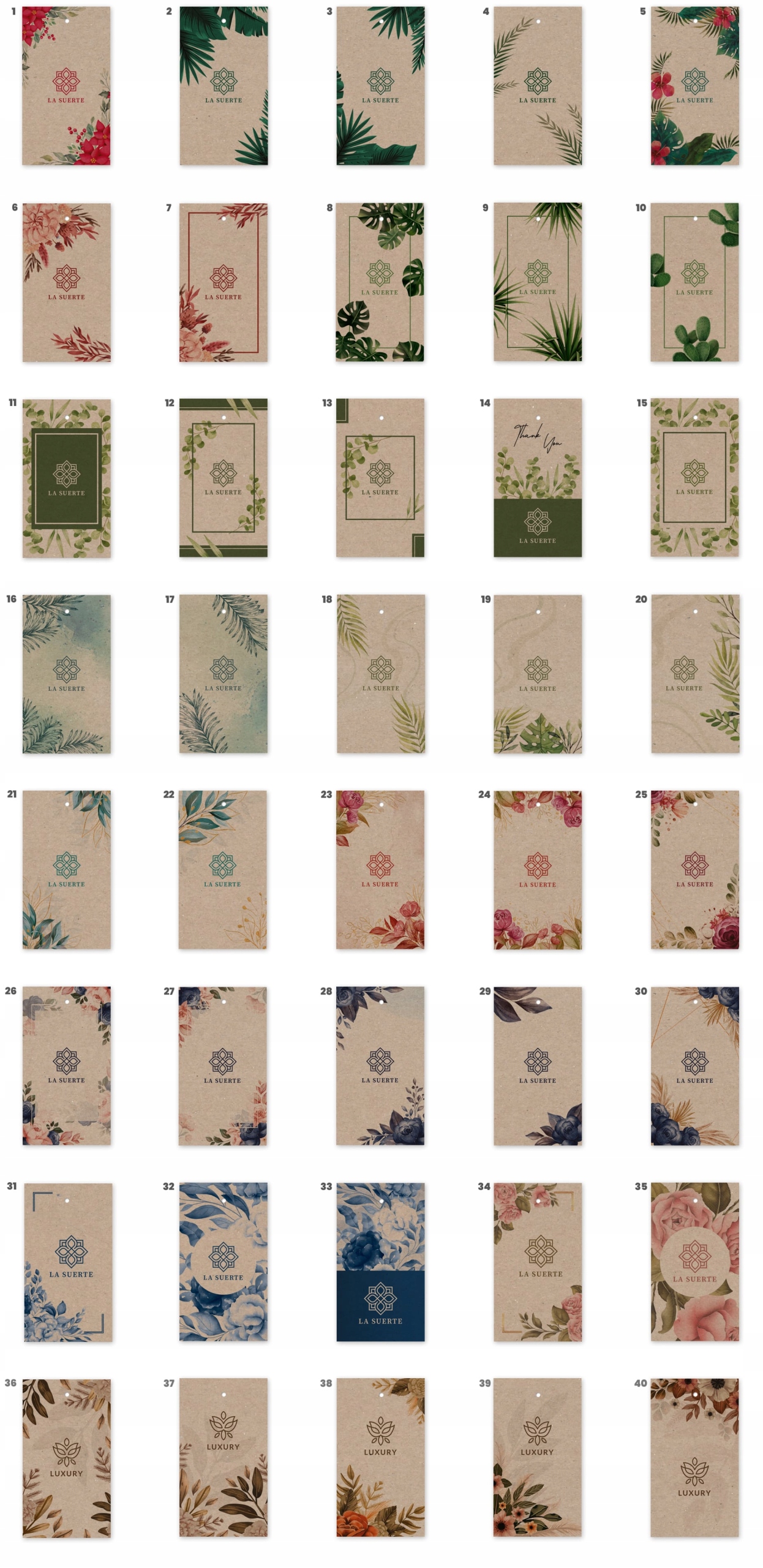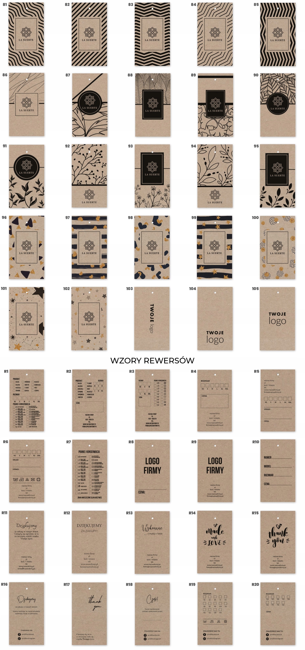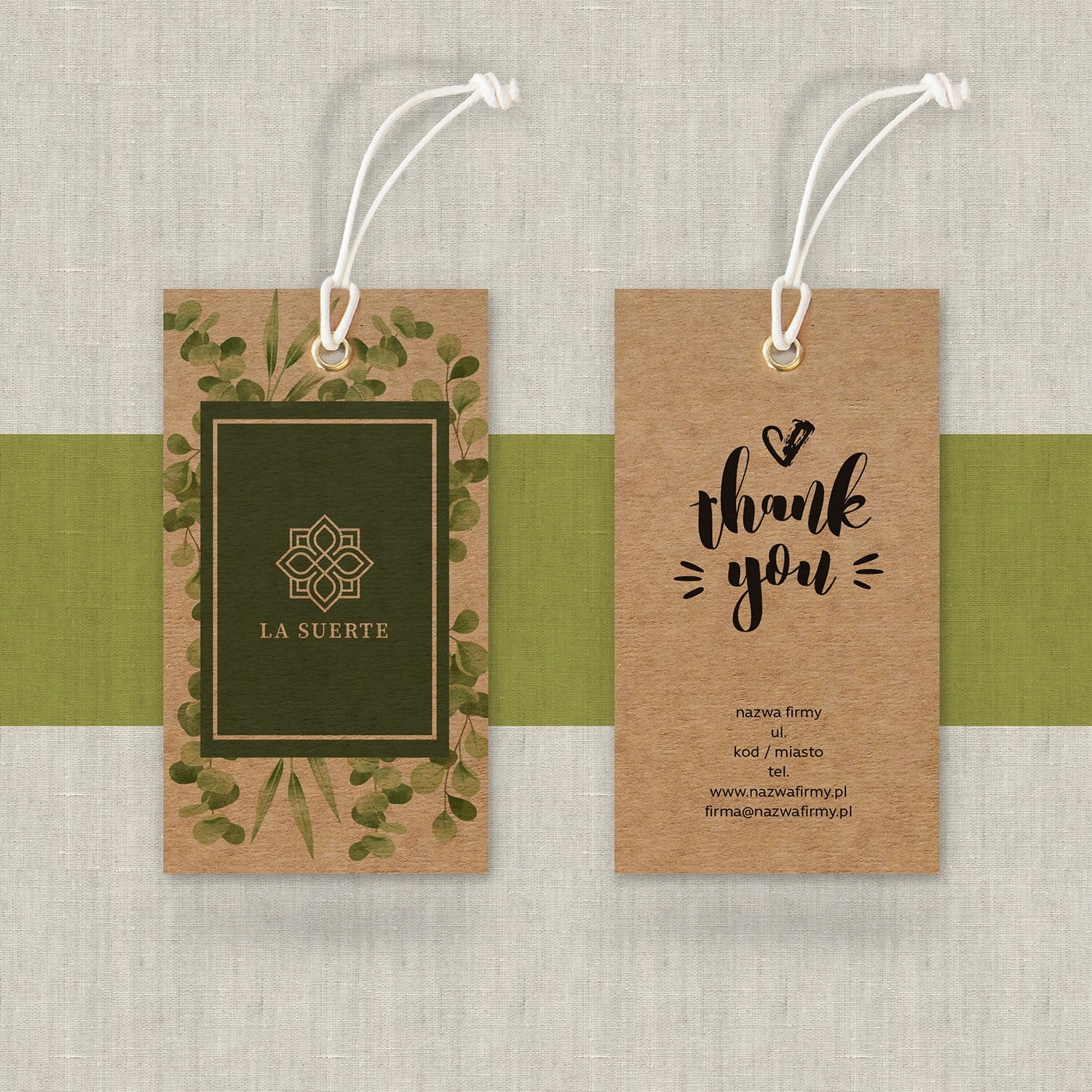 На сайте на этом аукционе вы покупаете бирки, напечатанные в цвете с одной стороны и в черном цвете с другой, на жесткой экологической бумаге с сертификатом FSC.