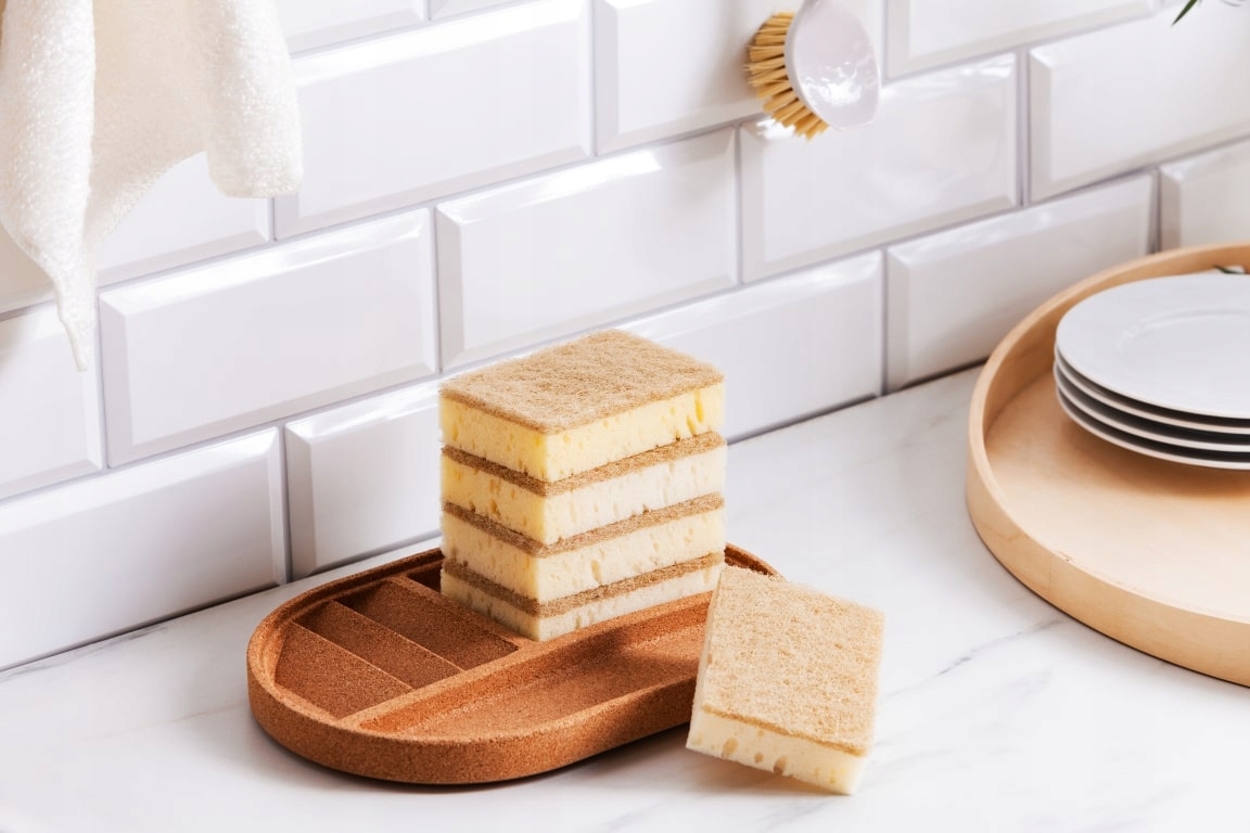 Мягкая сторона изготовлена из переработанных синтетических волокон, а чистящая сторона изготовлен из волокон агавы сизаля.