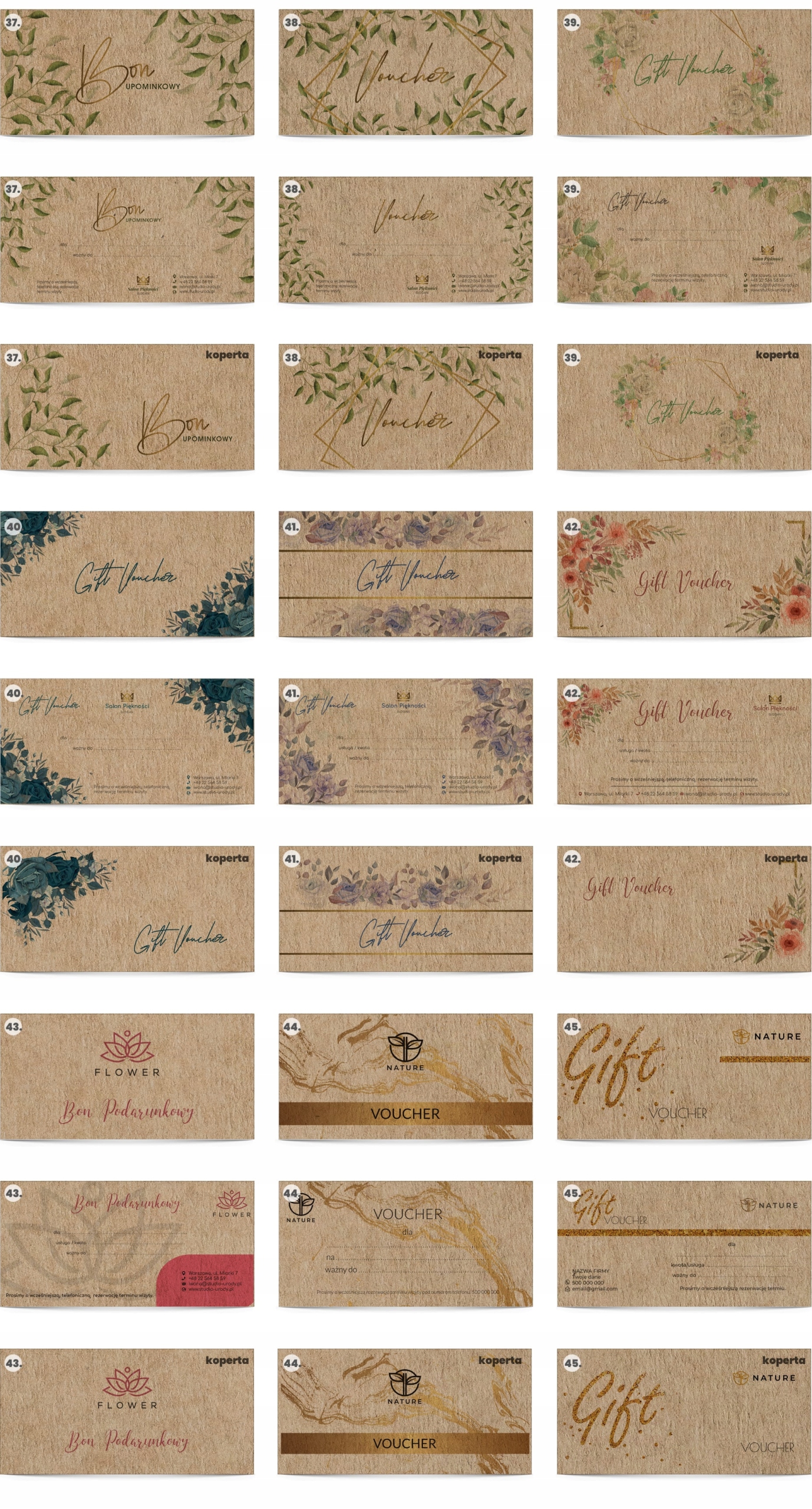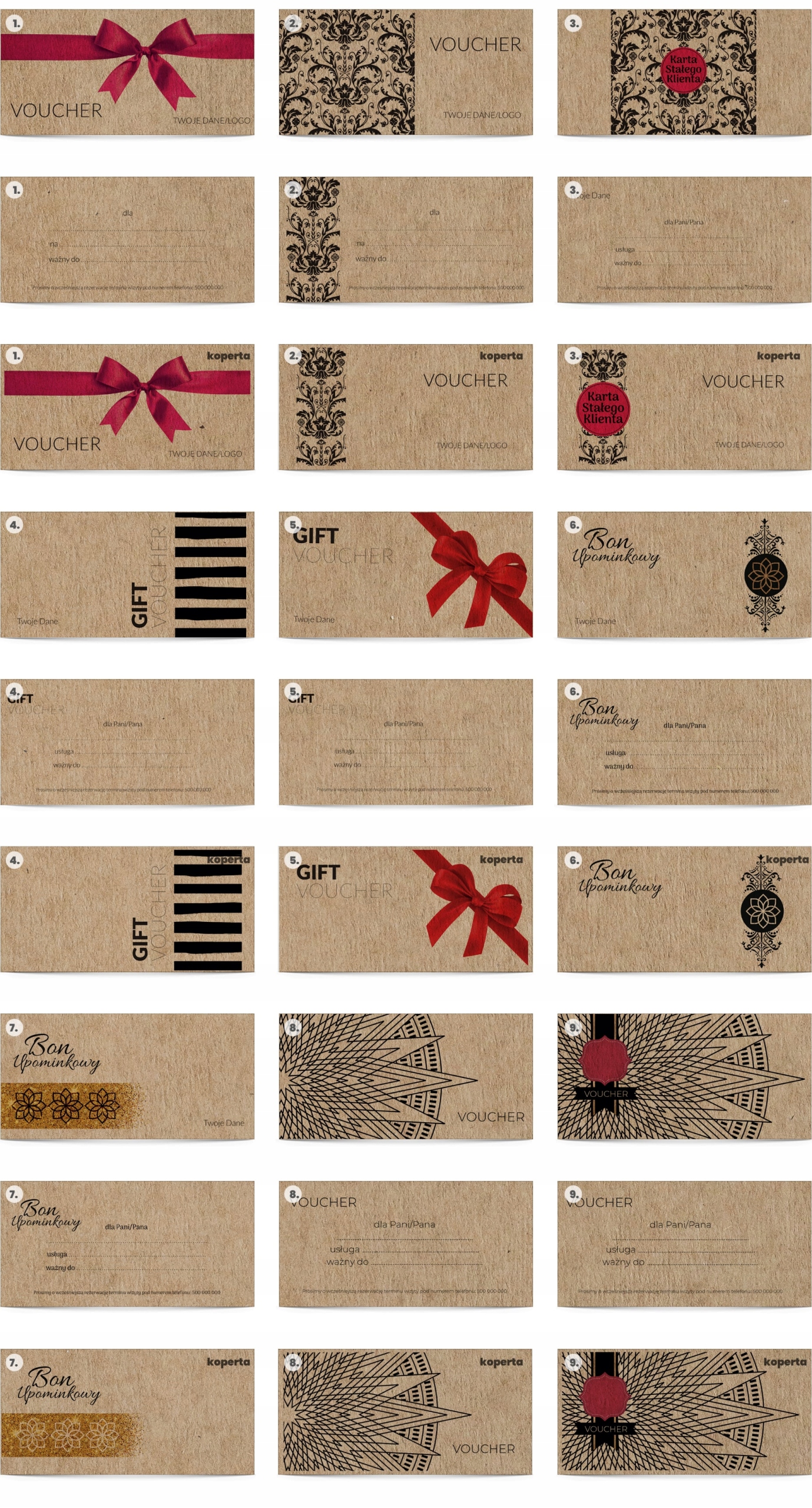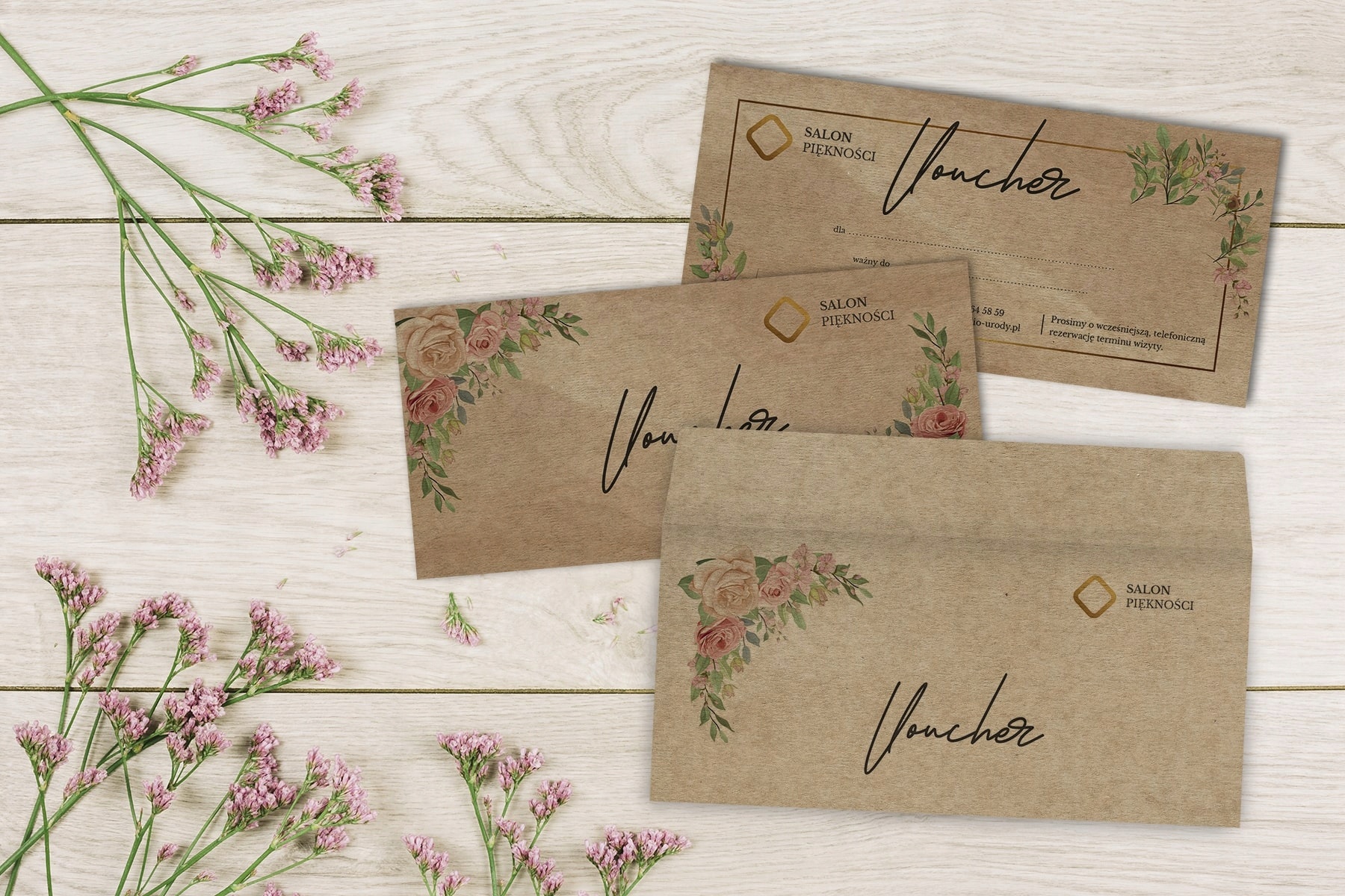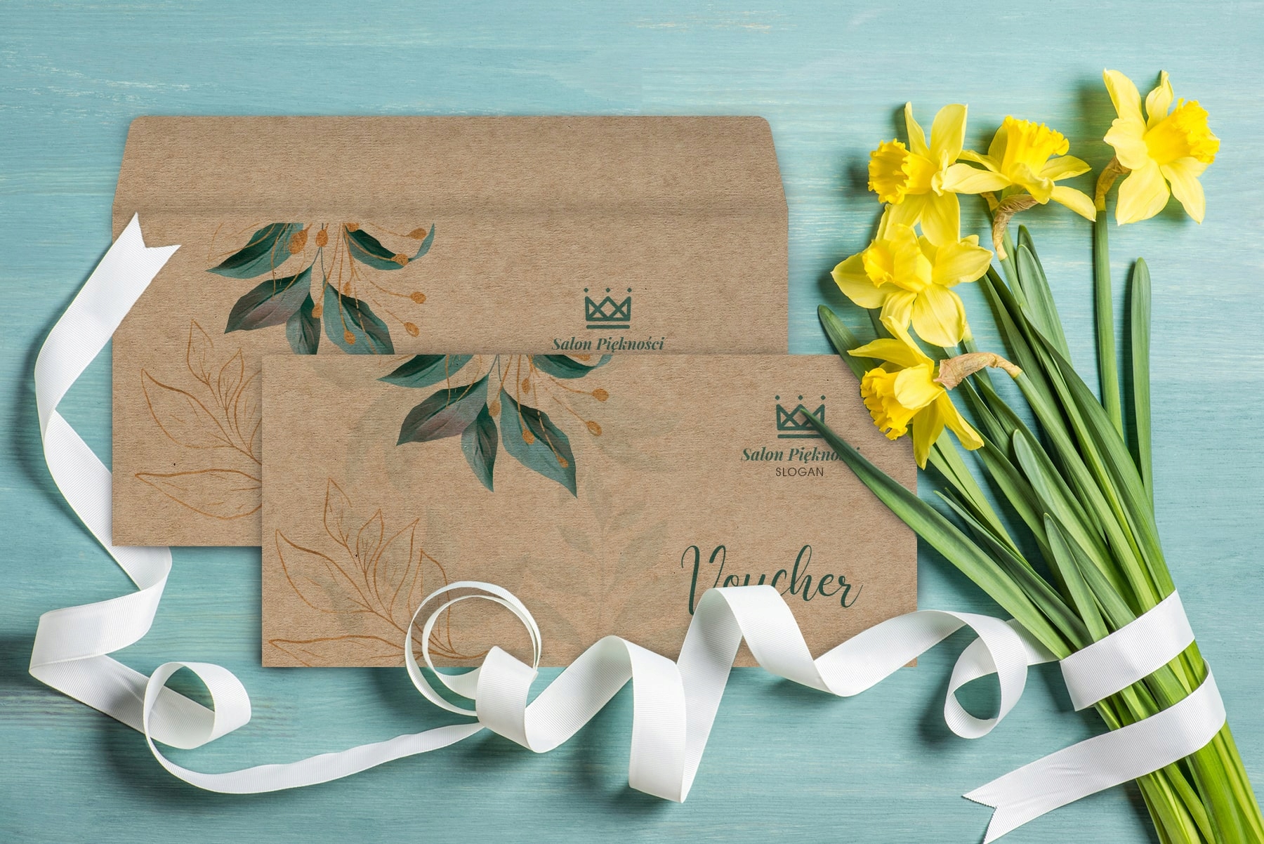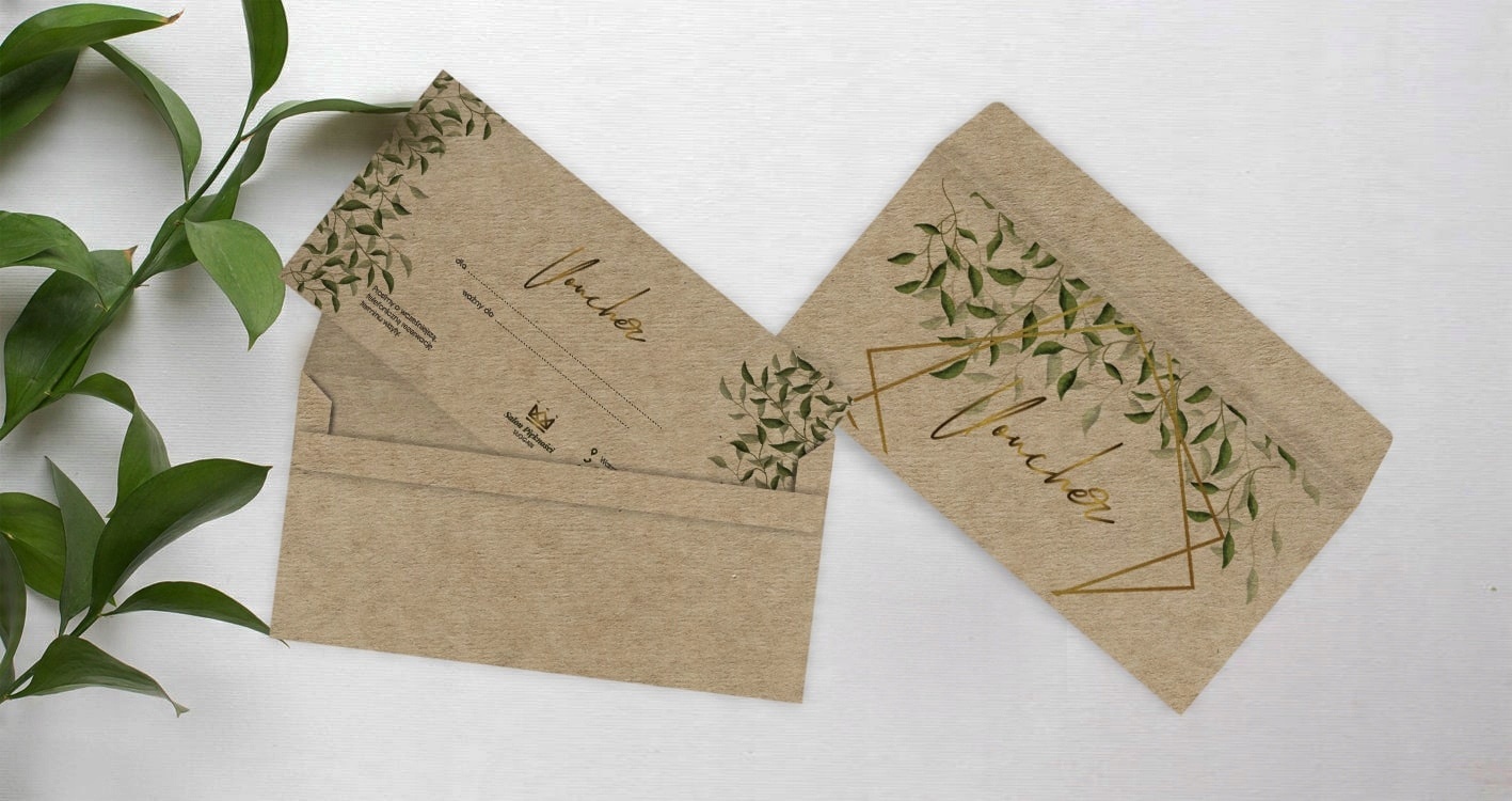 Мы также предлагаем оригинальные крафт-конверты с вашим ЛОГОТИПОМ для ваучеров. Спроектированы таким образом, что вместе с подарочными сертификатами они составляют красивый комплект.