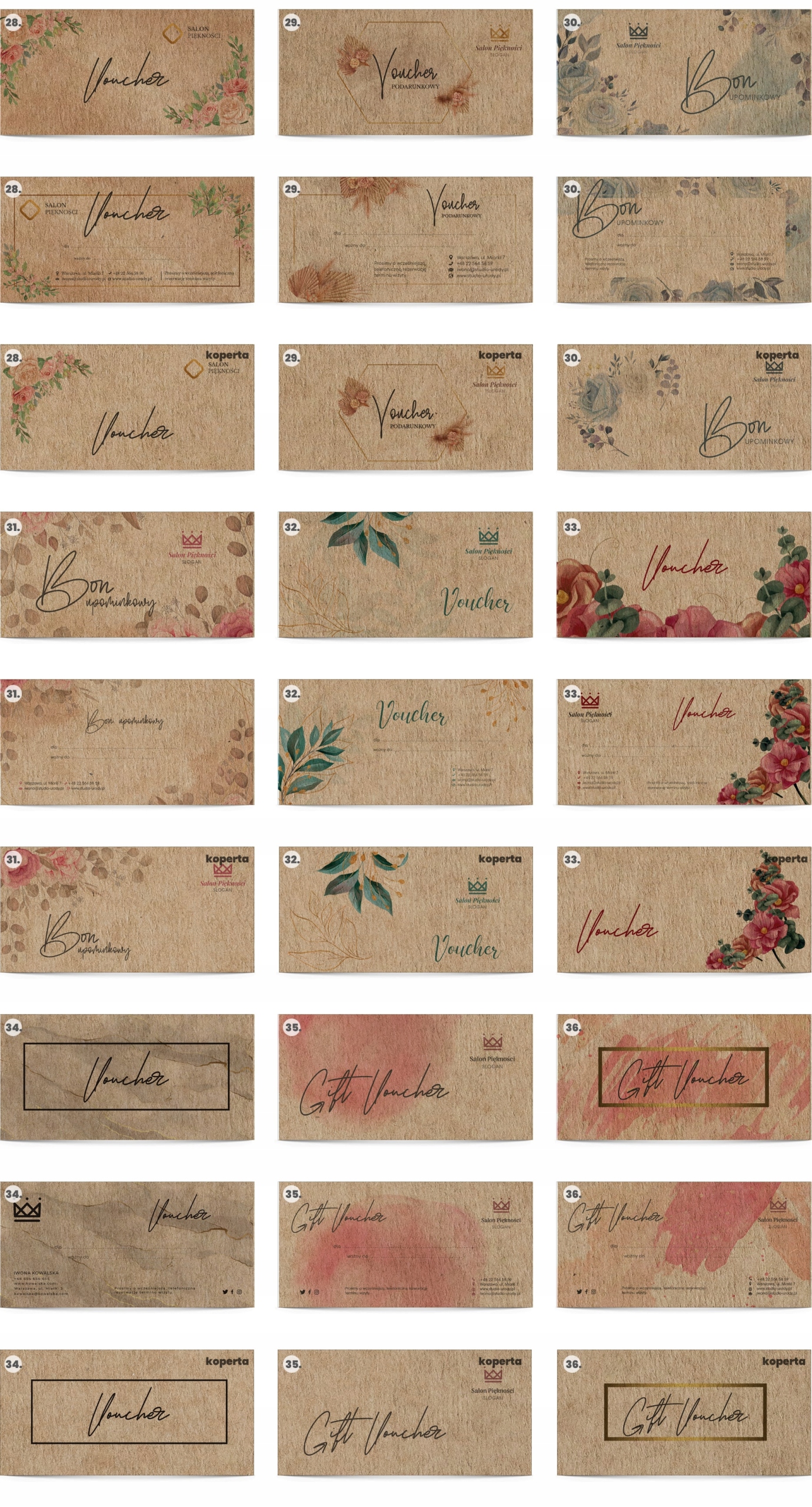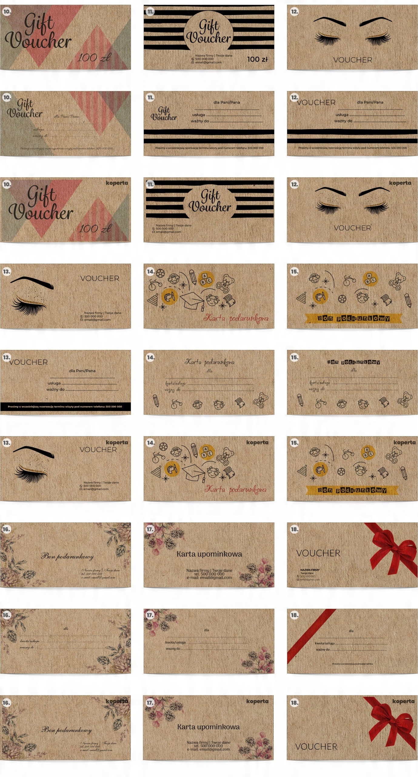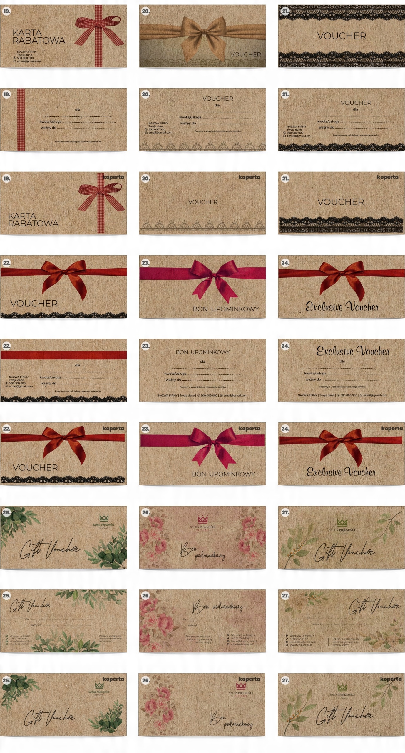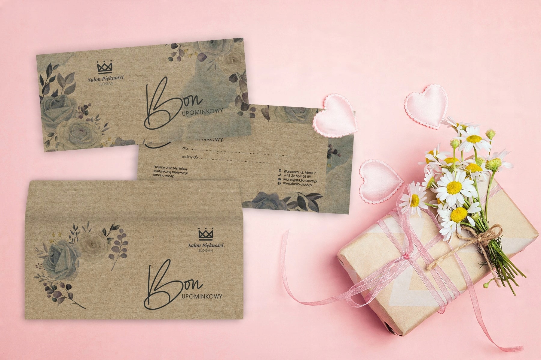 Мы также предлагаем оригинальные крафт-конверты с вашим ЛОГОТИПОМ для ваучеров. Спроектированы таким образом, что вместе с подарочными сертификатами они составляют красивый комплект.