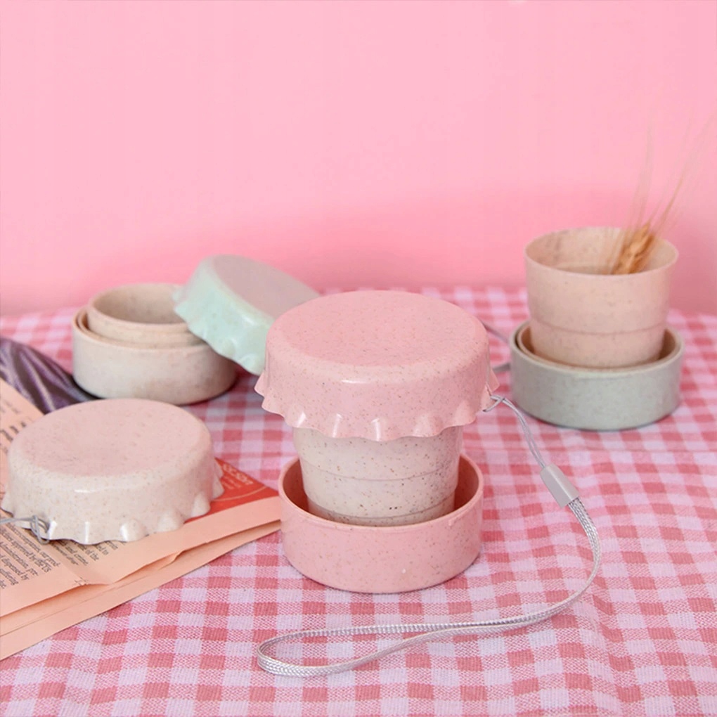 Складная кружка из пшеничной соломки с крышкой, удобная для переноски.