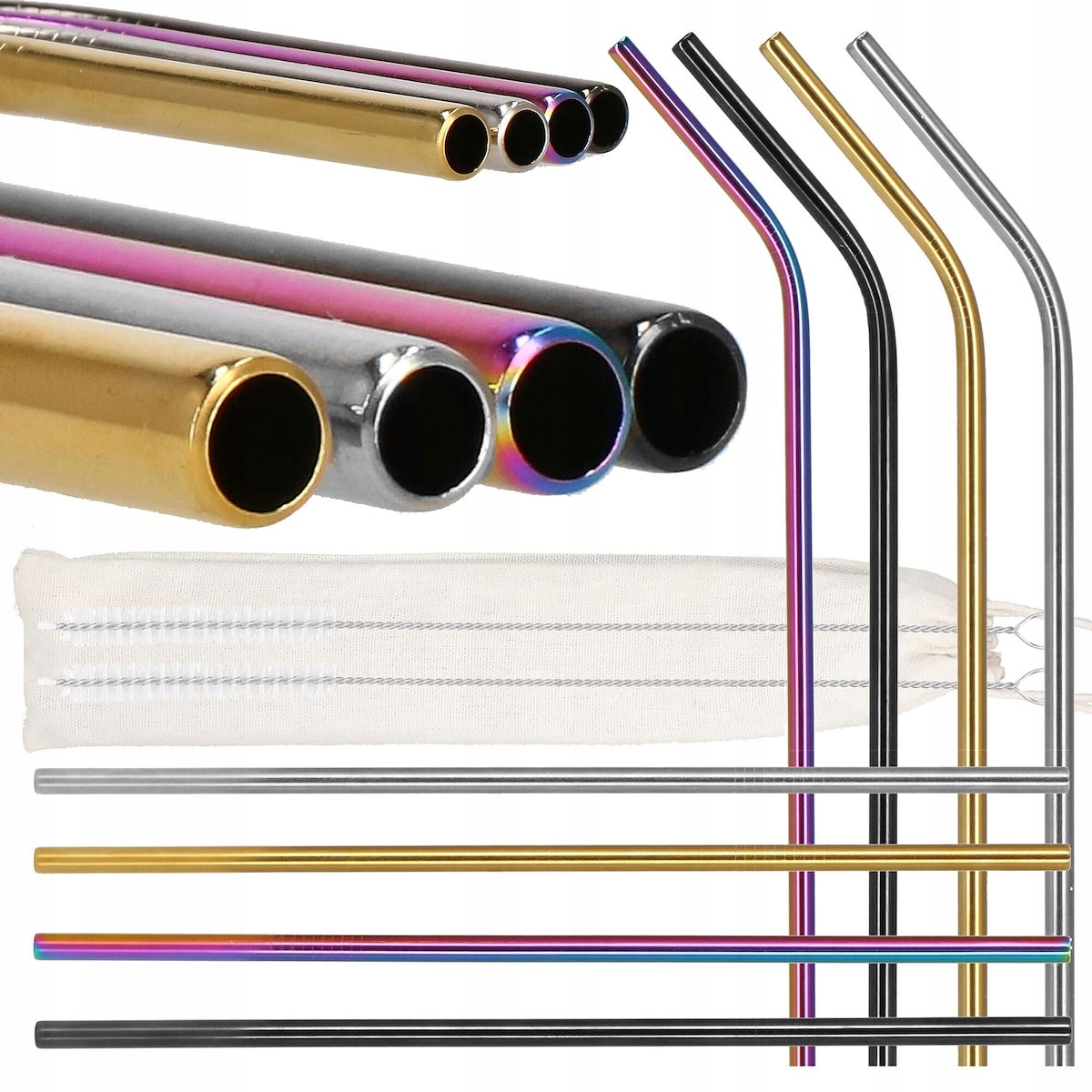 ЕКО ТОВСТІ ТРУБКИ МЕТАЛЕВІ СОЛОМИНКИ 8 шт. БАГАТОРАЗОВІ + ЩІТКИ ДЛЯ МИТТЯ