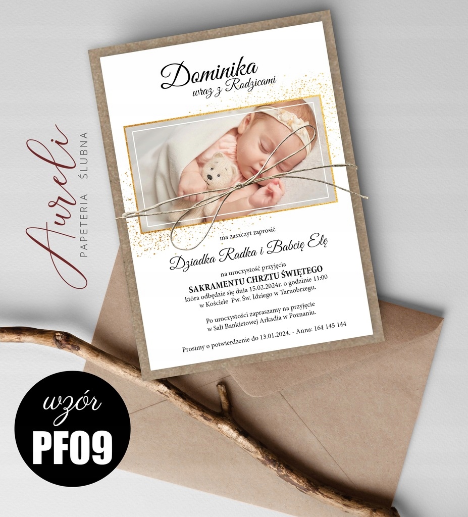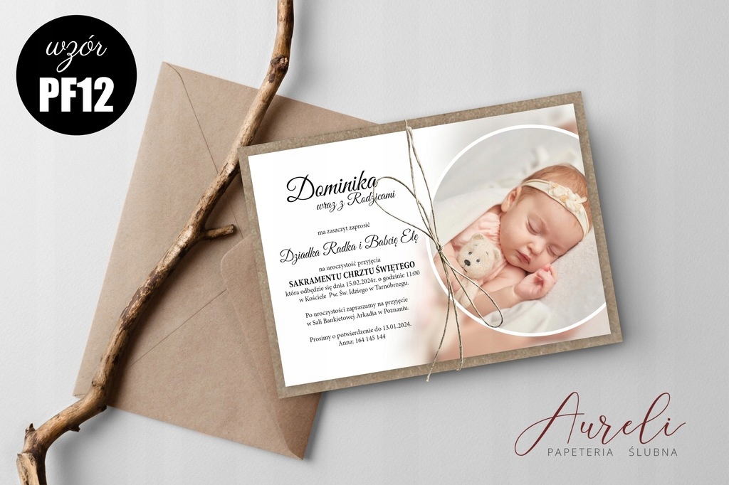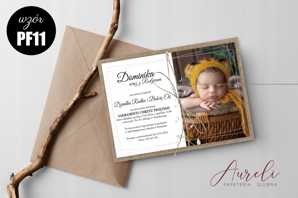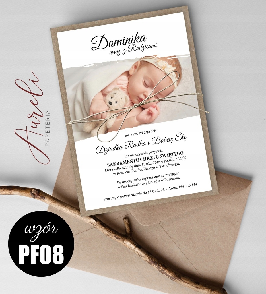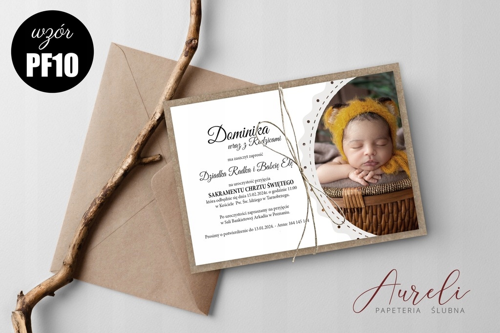 Eko Zaproszenia Na Chrzest Zdjęcie koperta sznurek