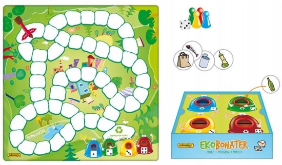 ekobohata - это игра, которая даст всей семье очень весело и побудит вас заботиться о окружающей среде ! Задача игроков состоит в том, чтобы собрать различные типы мусора с доски, например, банки, старые газеты, бутылки, пластиковая упаковка.
