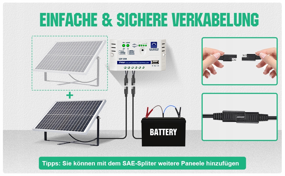 ЭКО-ДОСТОЙНАЯ панель представляет собой надежный и экологический источник энергии для зарядки аккумуляторов в различных приложениях. Благодаря прочной конструкции панели и контроллера заряда вы сможете наслаждаться длительным использованием солнечной энергии. Независимость от электросети обеспечивает независимость и мобильность в повседневном использовании. Безопасная зарядка, эффективное преобразование энергии и простота установки делают этот комплект идеальным решением для людей, ищущих энергосберегающие решения.