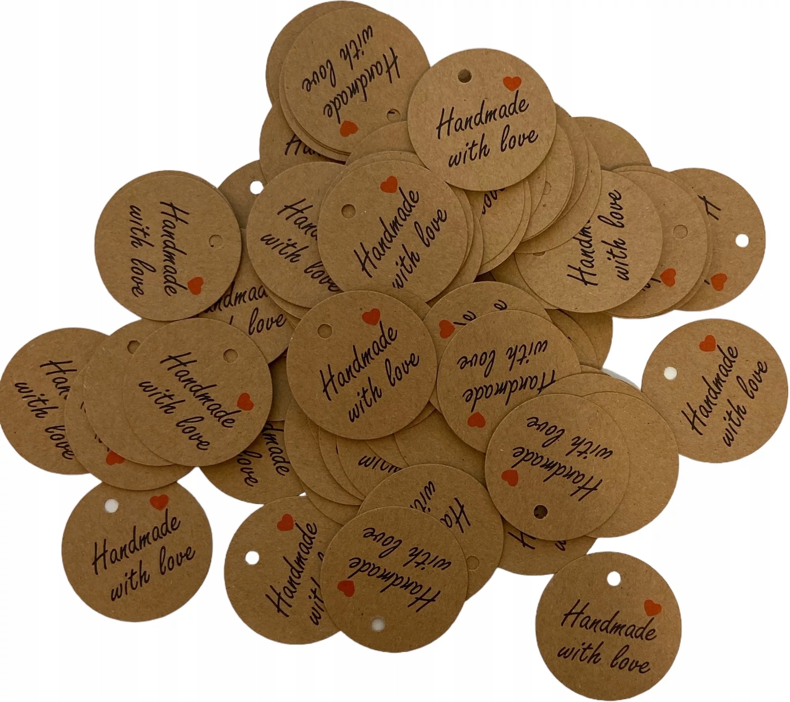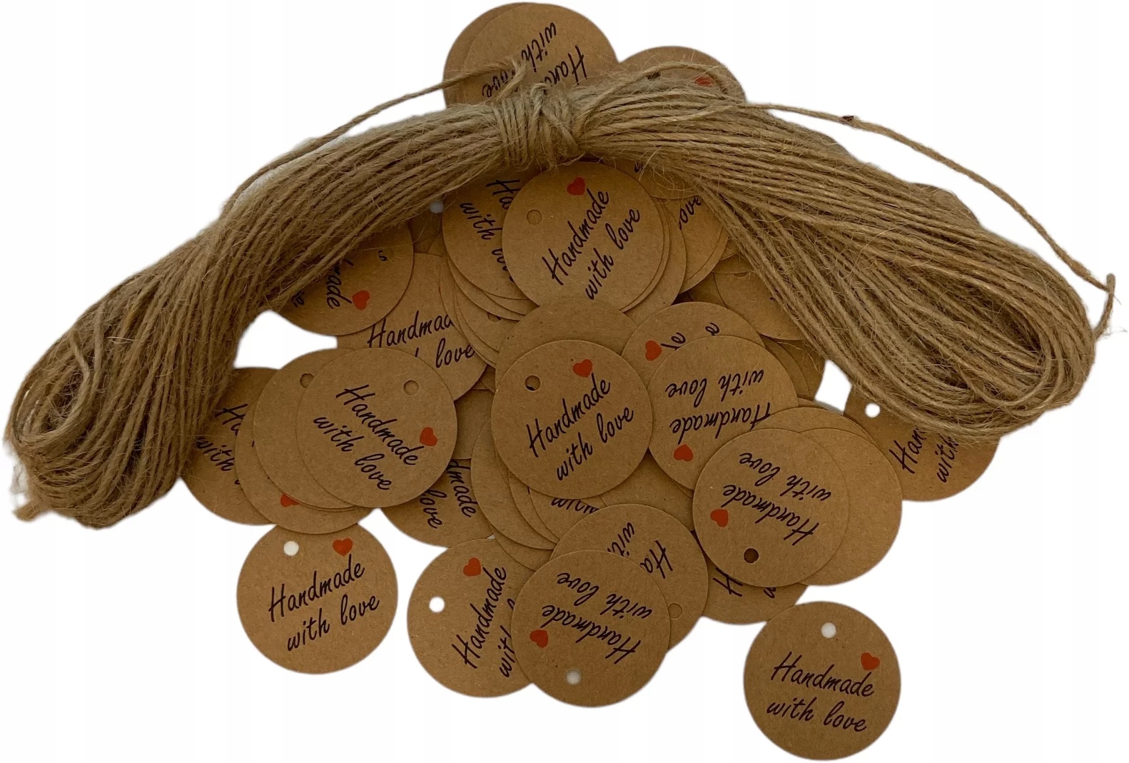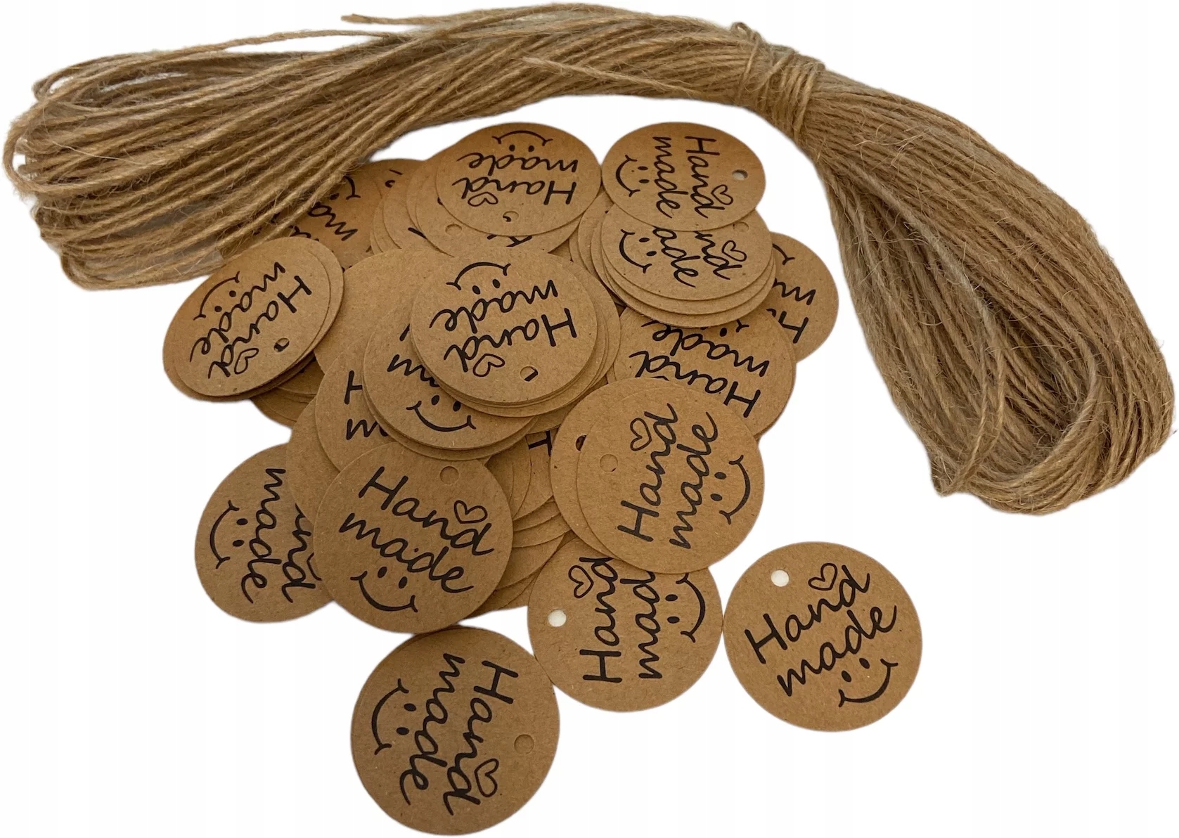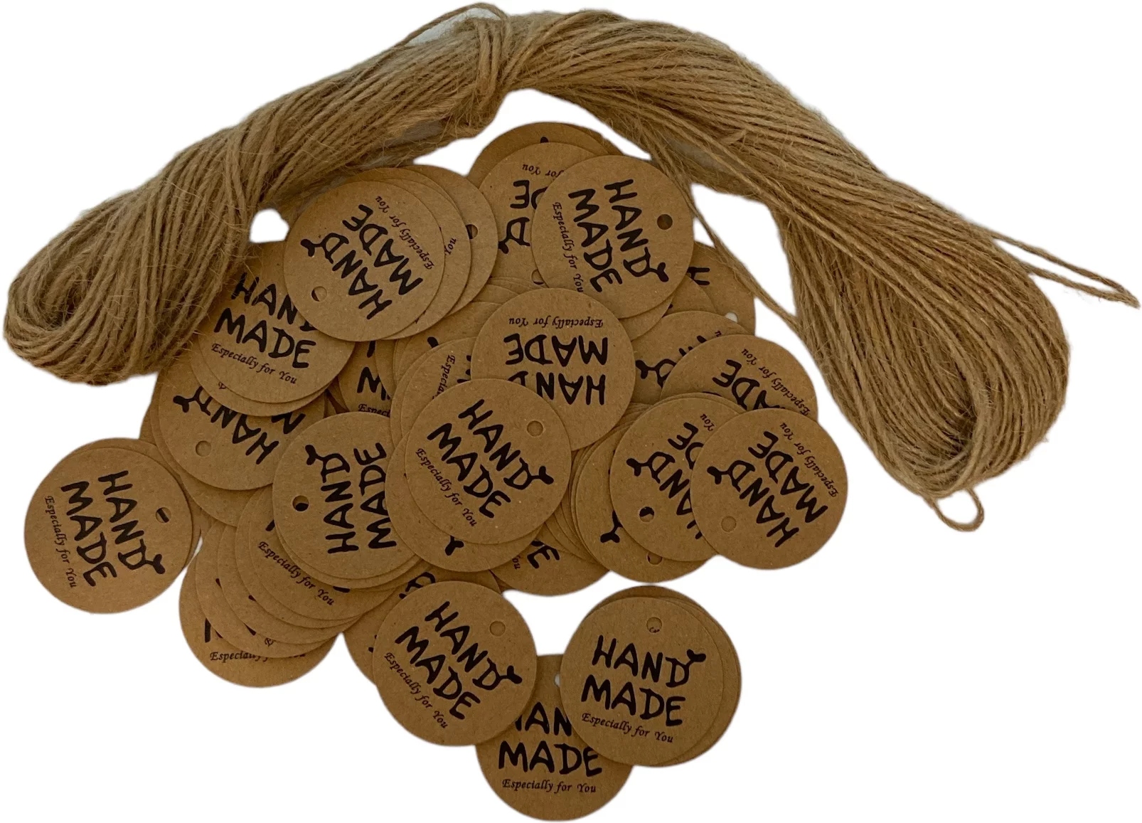 Екологічні етикетки, картонні етикетки Hand Made - 100 шт + шнурок 20 м