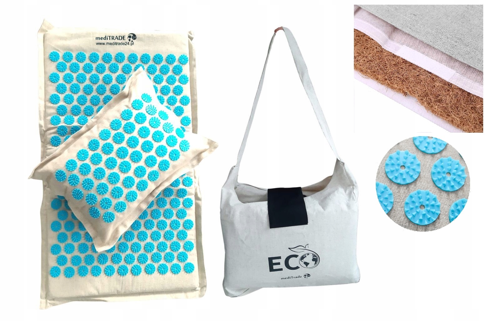 ЭКО-МАТ С ПОДУШКОЙ — новейший продукт из нашей линейки ковриков, соответствующий современным тенденциям в области акупрессурных ковриков.